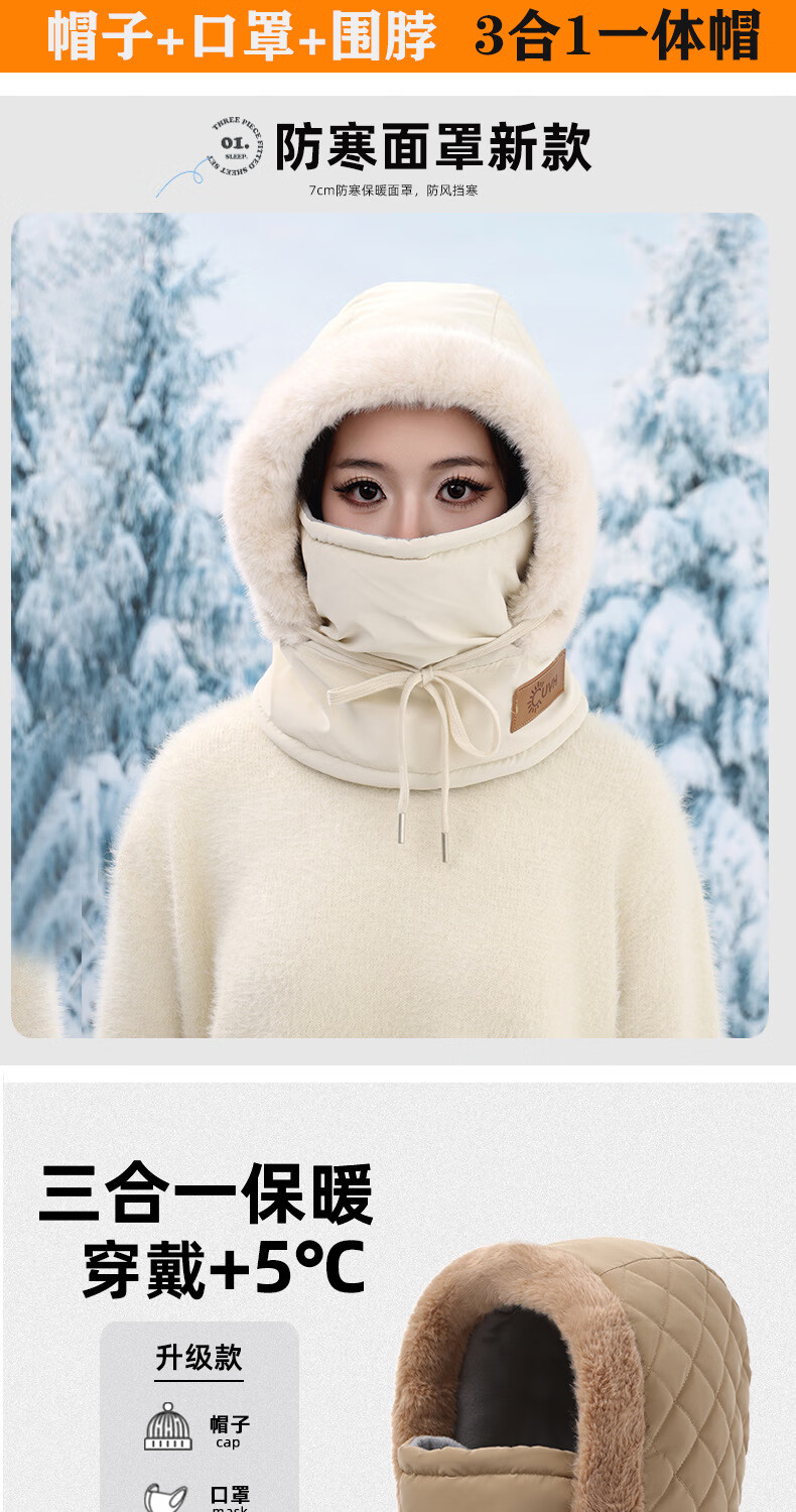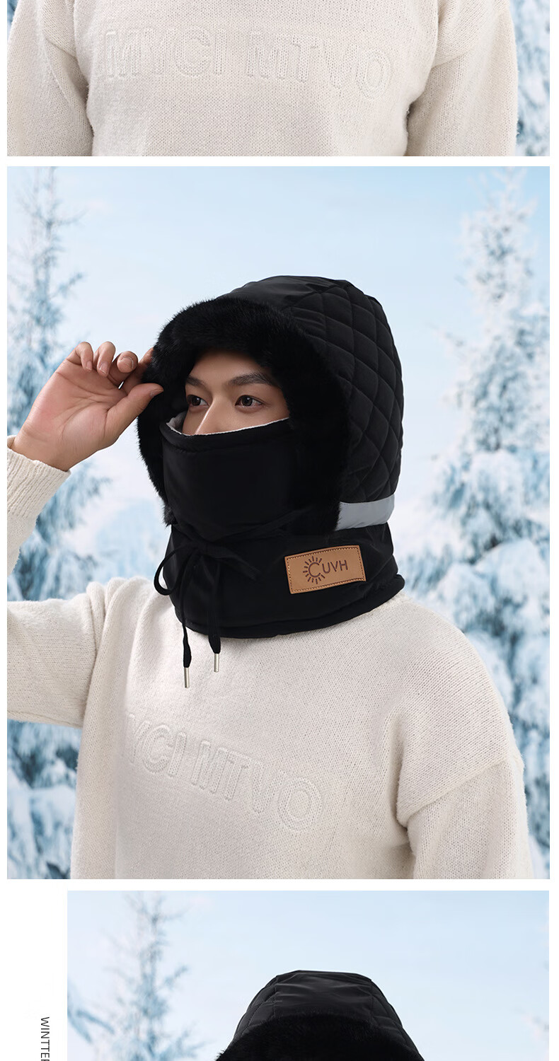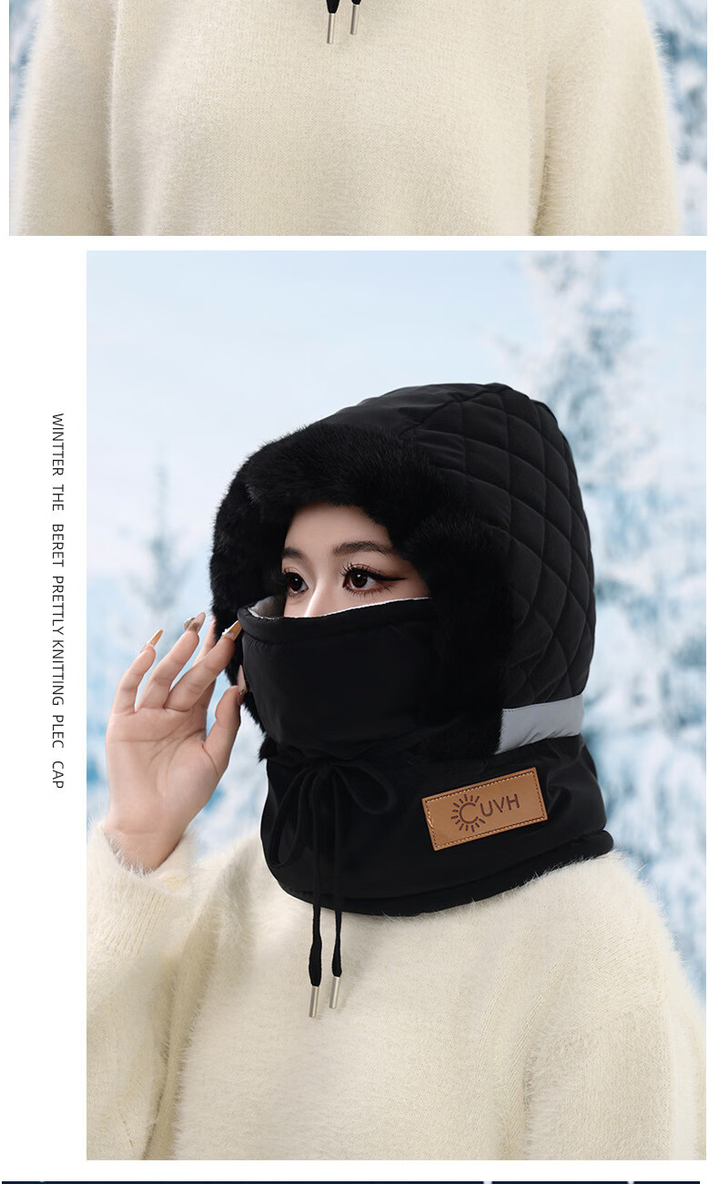 Winter plus velvet warm ear protection Lei Feng hat for men and women outdoor cycling and skiing cold-proof hat face mask and neck scarf one-size-fits-all hat