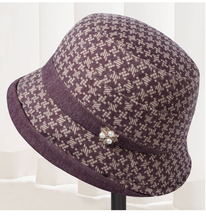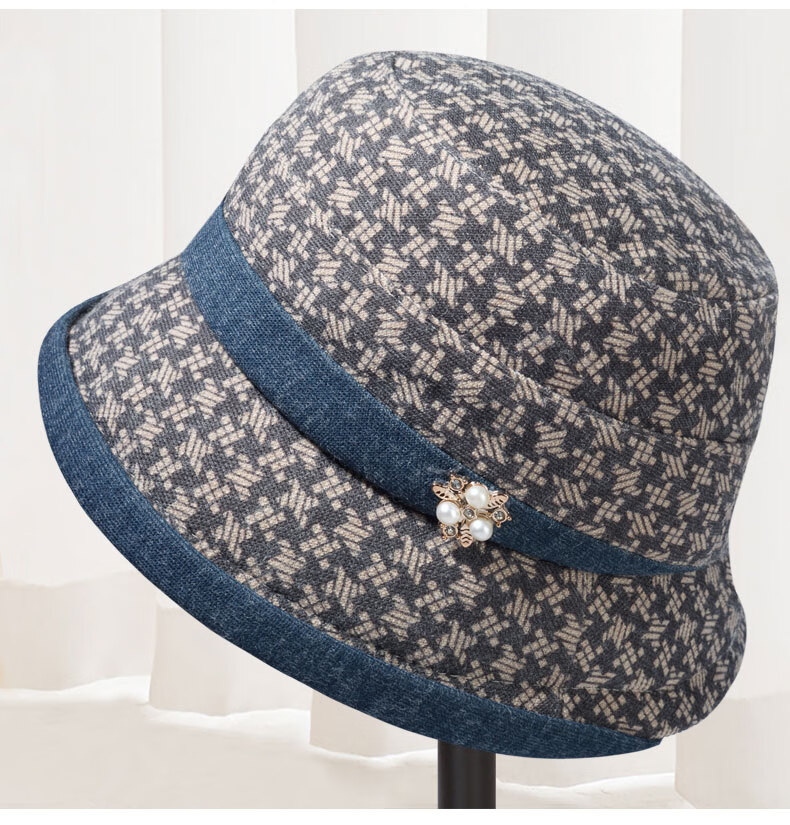 Middle-aged and elderly women's autumn and winter mother's basin hat grandma's warm fisherman hat old lady's casual and versatile blue