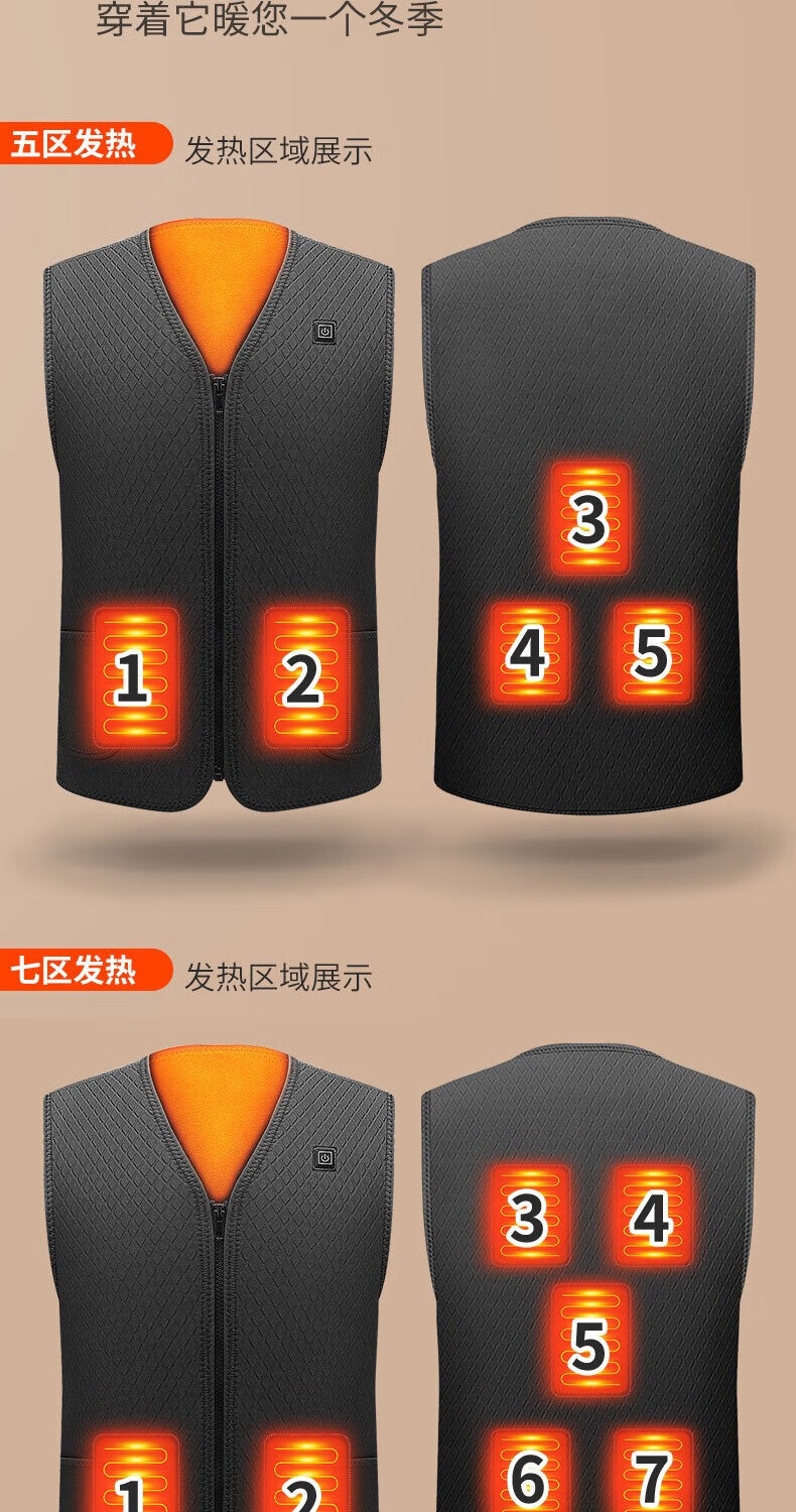 Electric heating vest fishing suit men's cold-proof smart heating vest charging winter warm clothes black five zones M