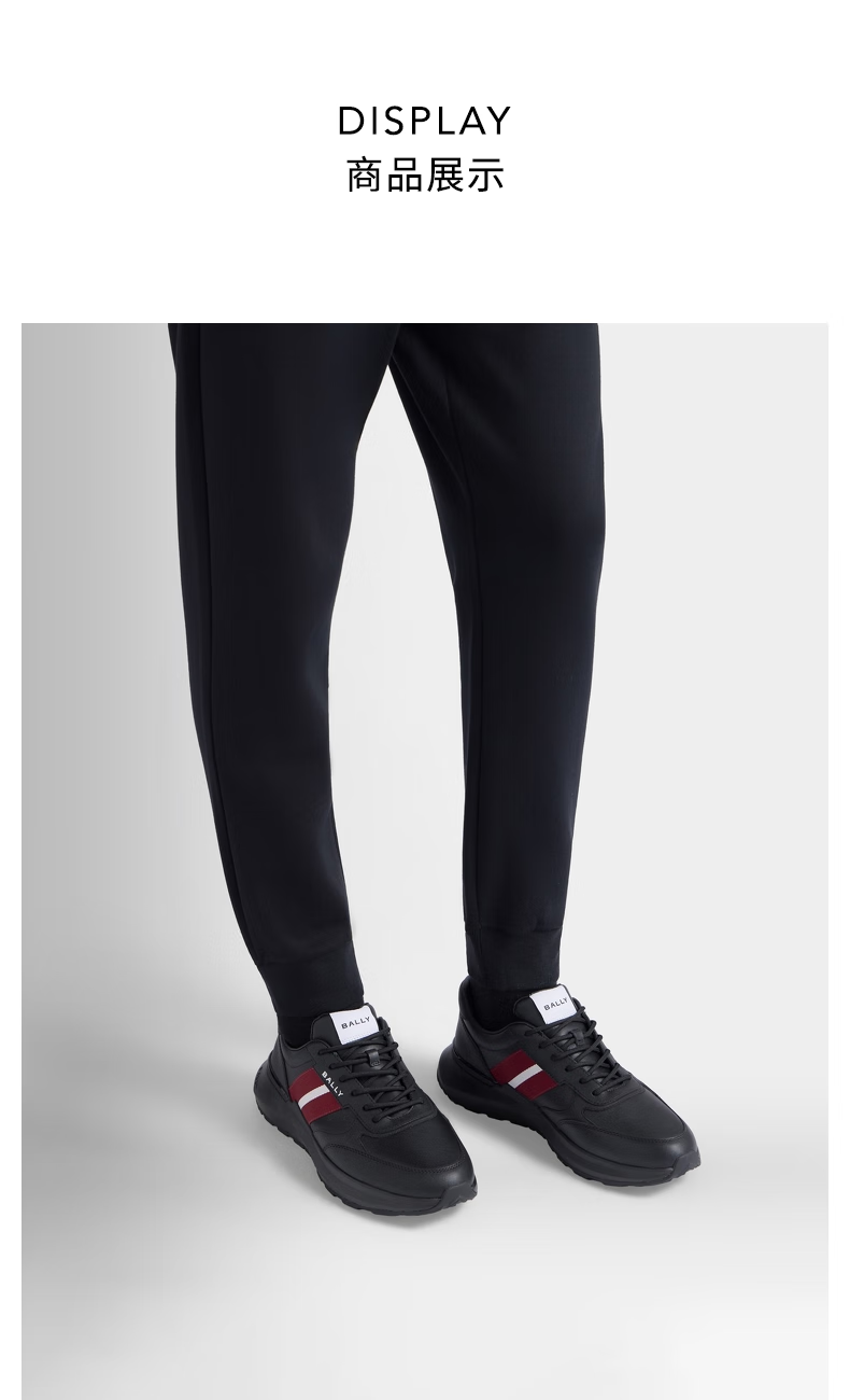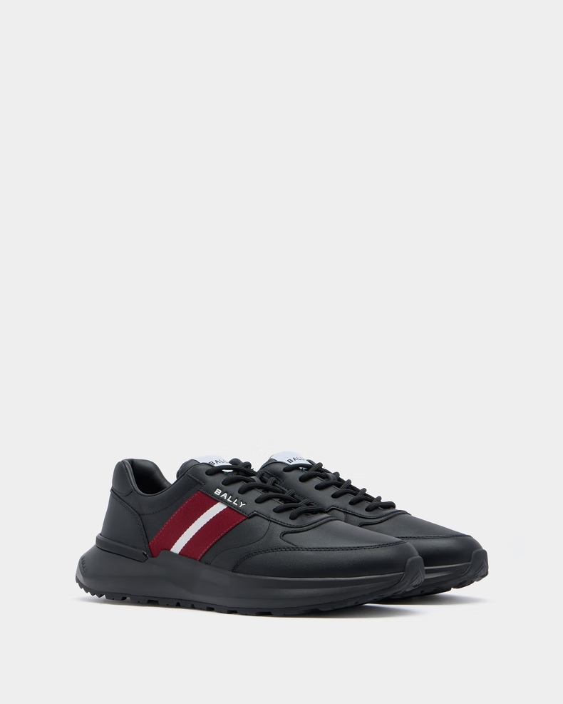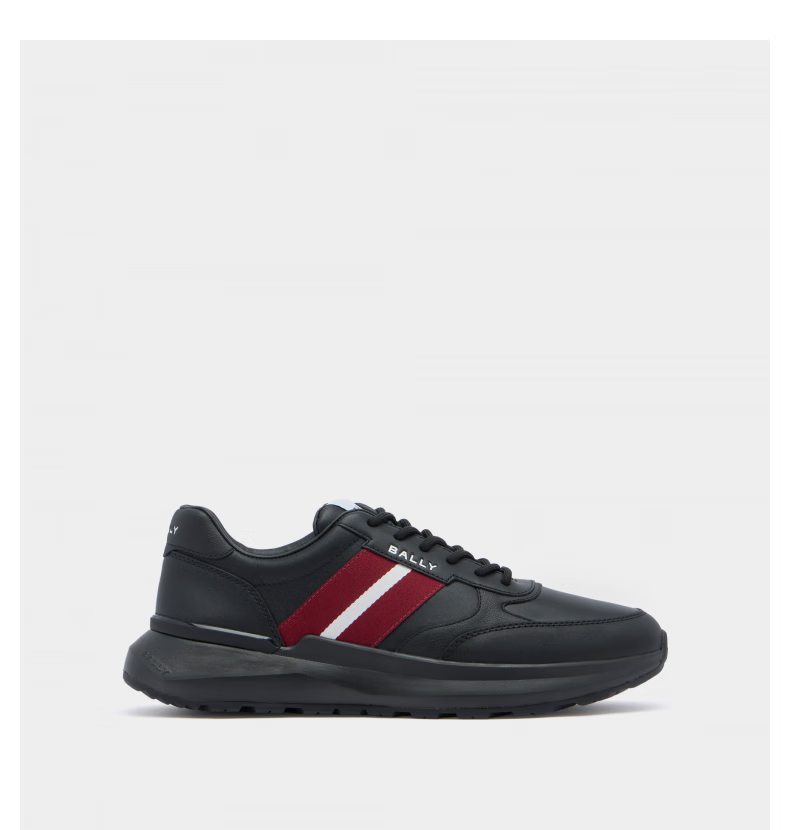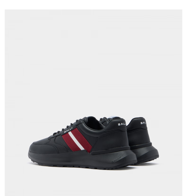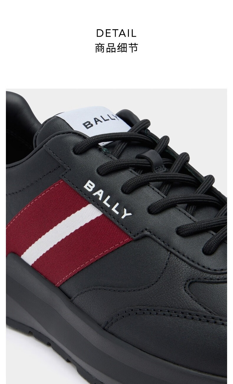 BALLY enjoy special offer red and white striped black cow leather men's casual sports shoes 6313182 black 43