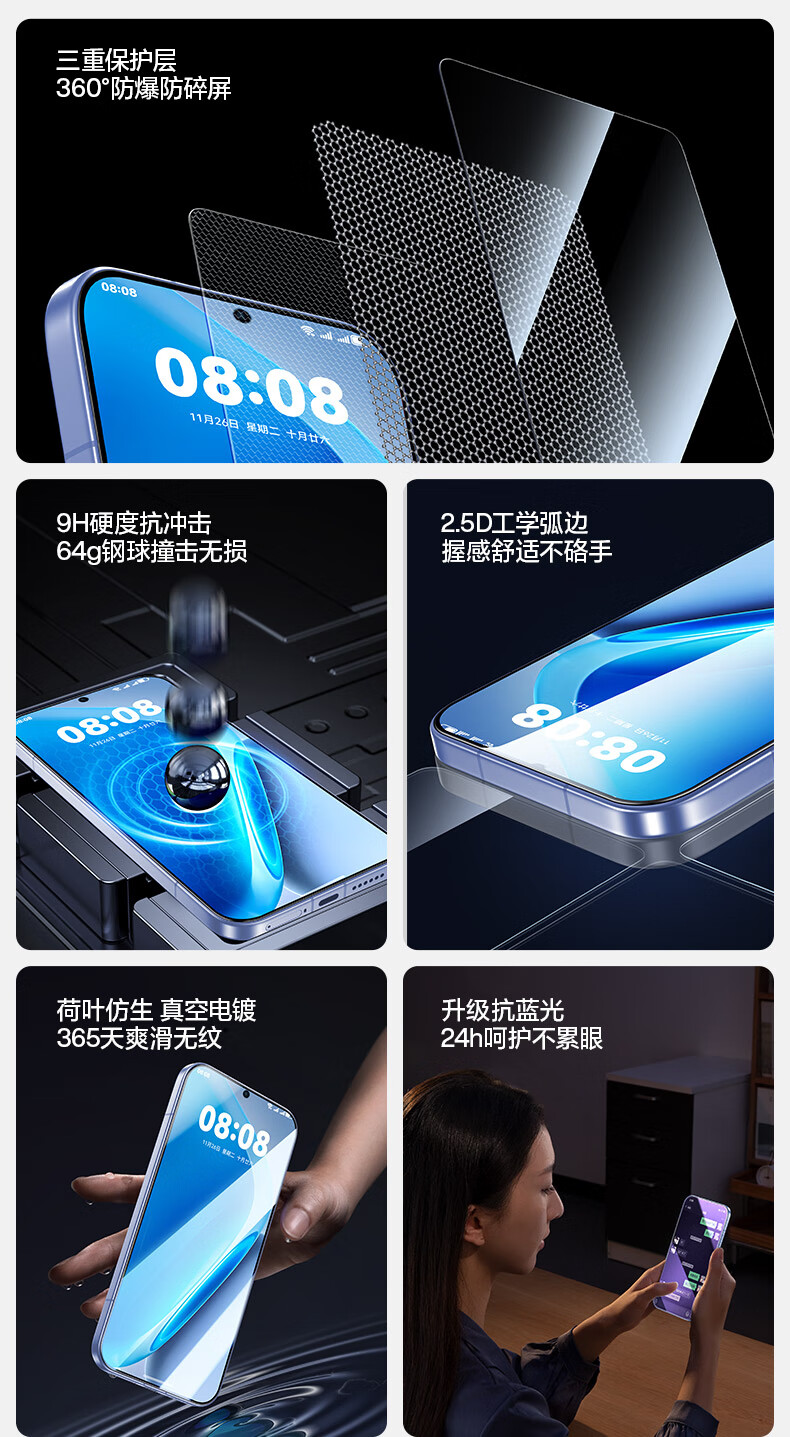 Flash magic explosion-proof suitable for iqooneo11 tempered film iQOO NEO11 mobile phone film upgrade no white edge explosion-proof anti-blue light pattern ultrasonic unlocking mobile phone protective film enhanced 2 pieces high-definition upgrade explosion-proof + artifact iQOO NEO11 fingerprint solution