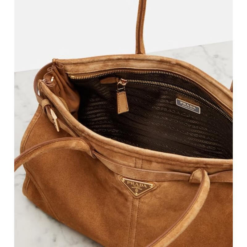 PRADA Luxury Women's BONNIE Large Suede Handbag Shoulder Bag Brown One Size