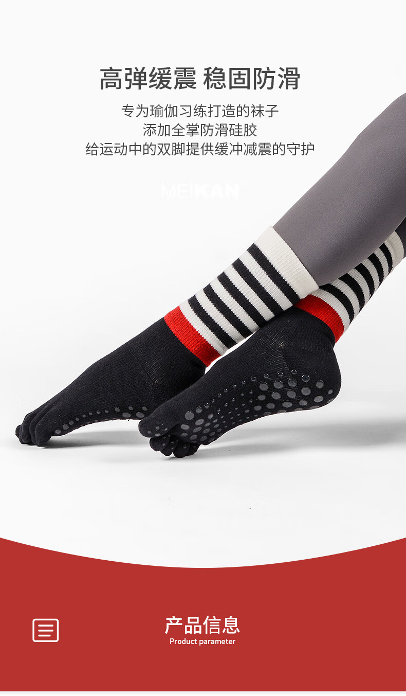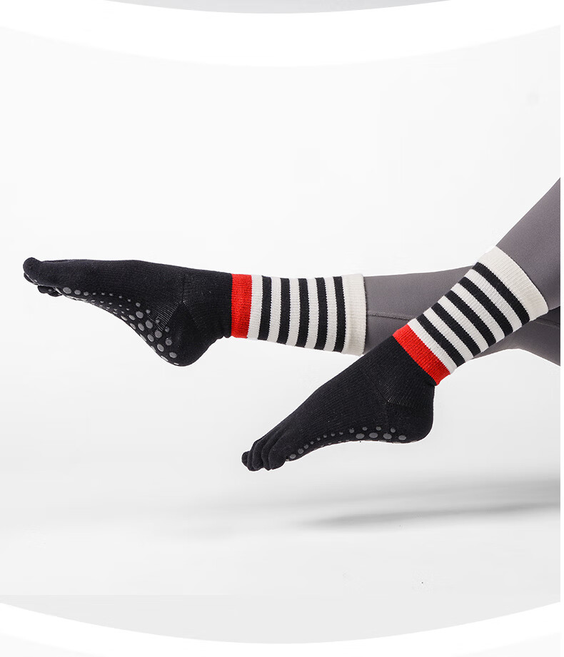 Meikan yoga socks, mid-calf socks, sliding socks, sports socks, long socks, toe socks, Pilates socks, black*2