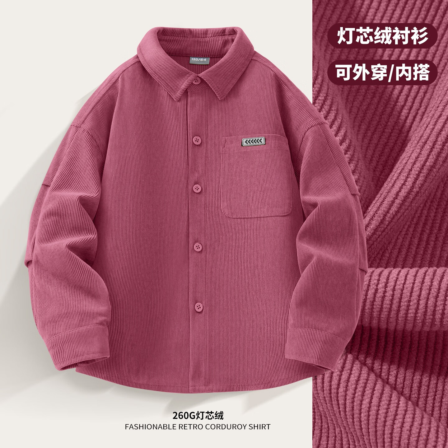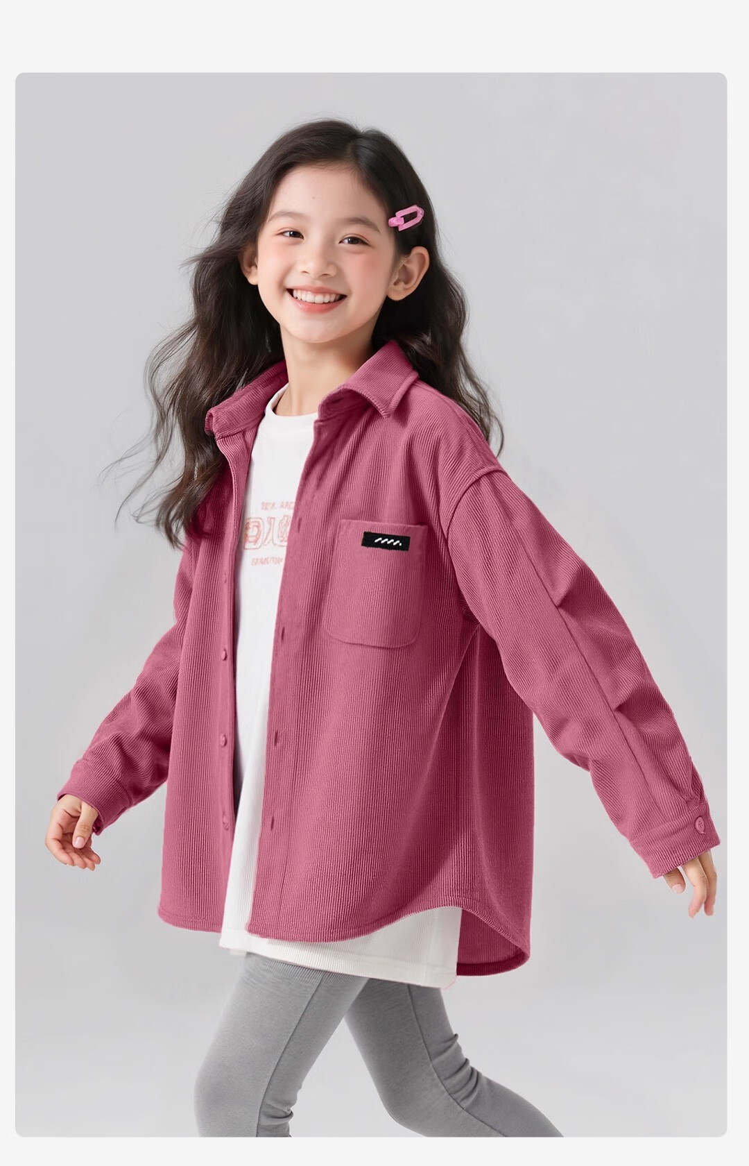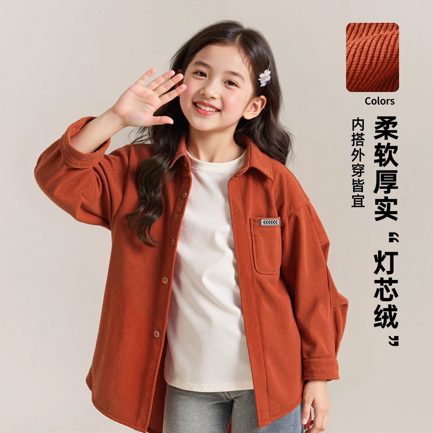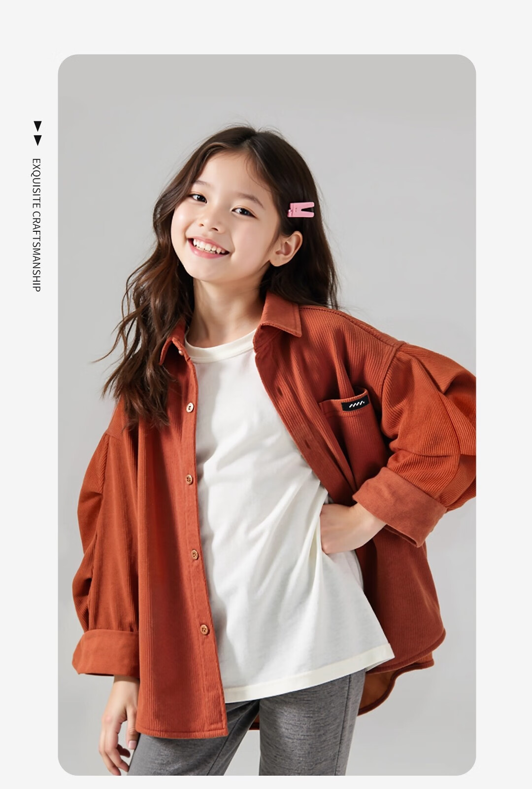 Girls' shirts 2025 new spring, autumn and winter corduroy shirts for older children, children's jackets, junior high school students, orange 150