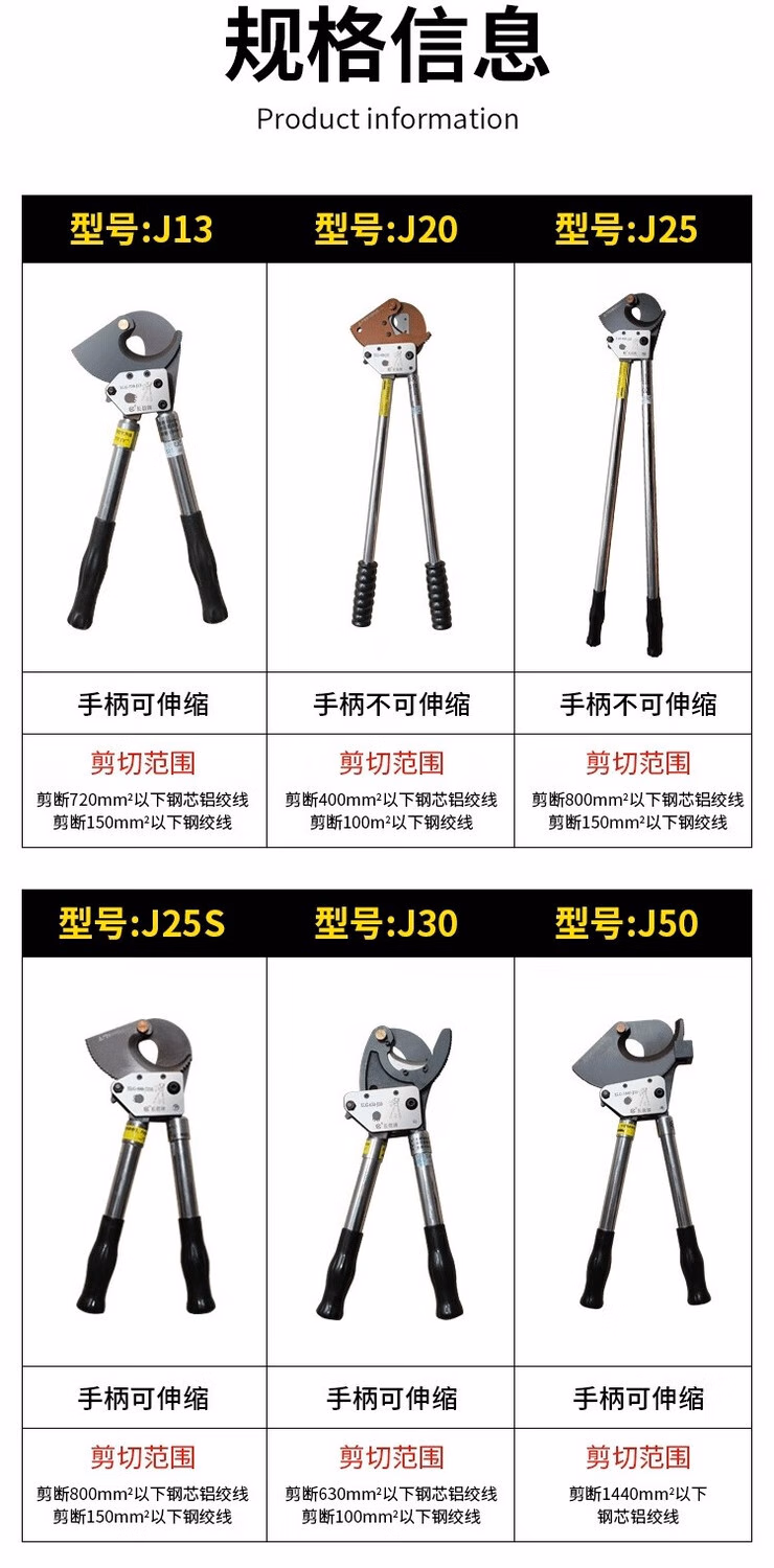 Qiao Bo Lai ratchet cable cutter gear cable scissors steel strand scissors manual scissors Changxin J130