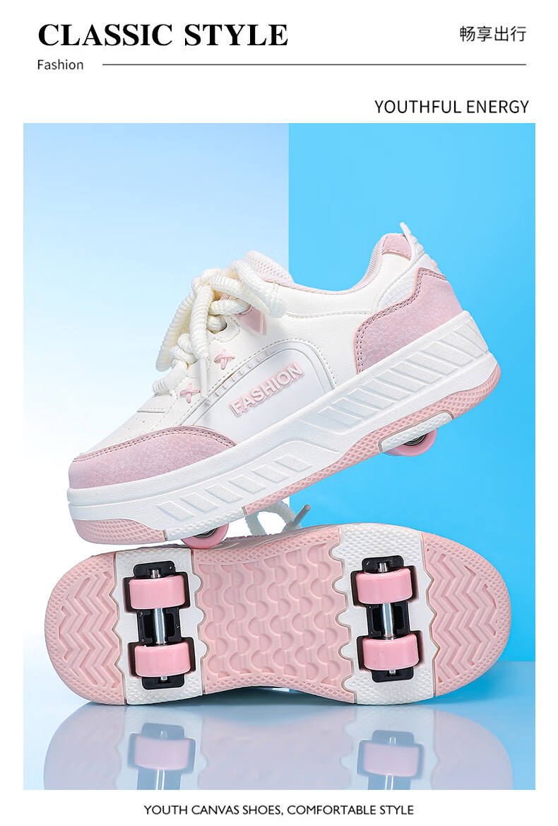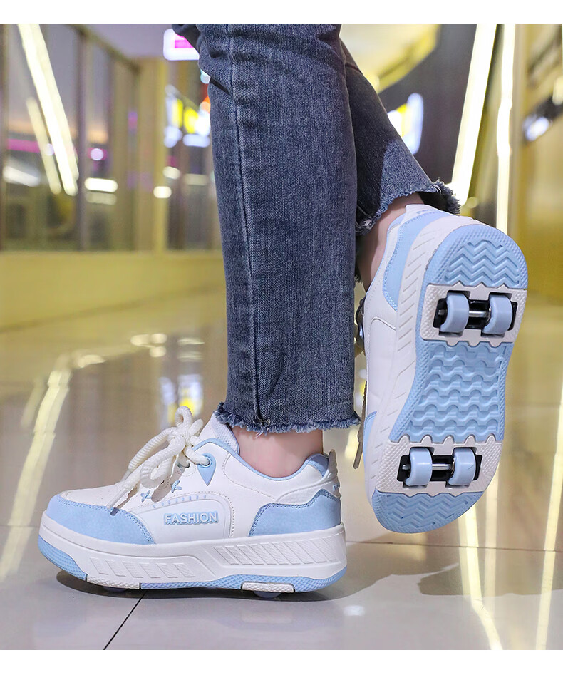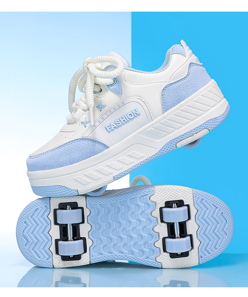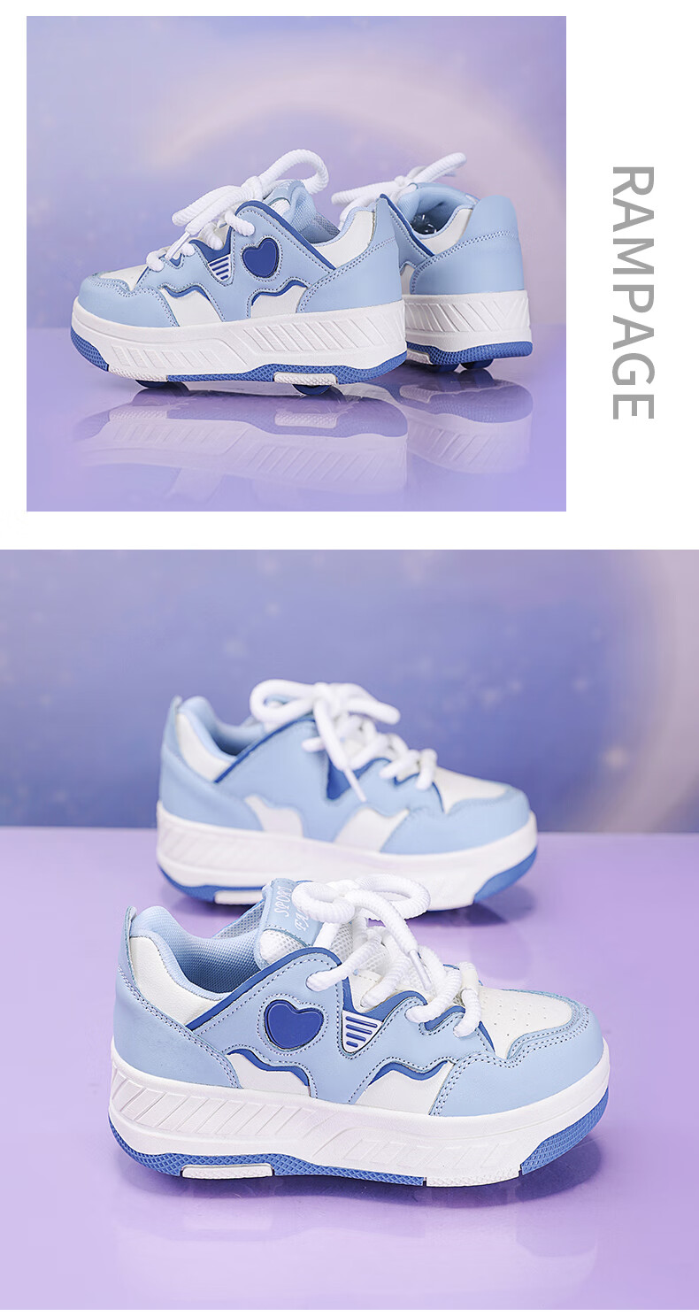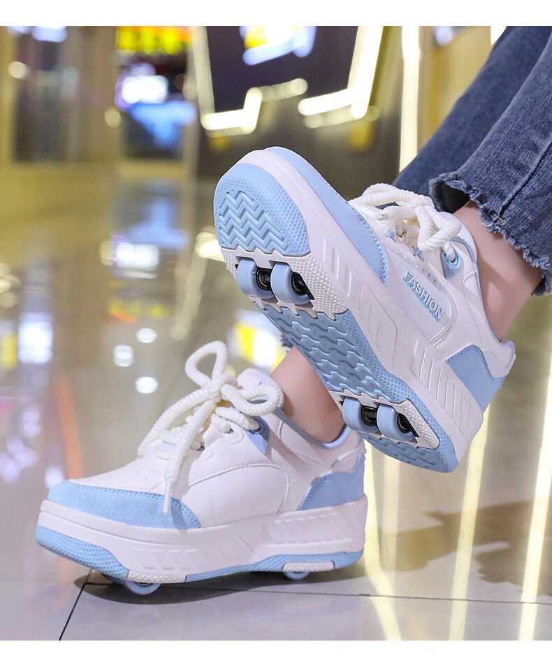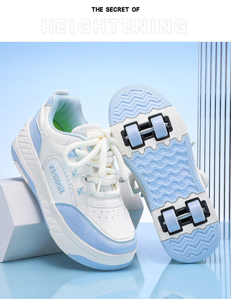 Children's Heelys Shoes Girls 2025 Autumn New Four-Wheel Retractable Sports Roller Shoes Girls School Skates 9928-Blue Upgrade 36