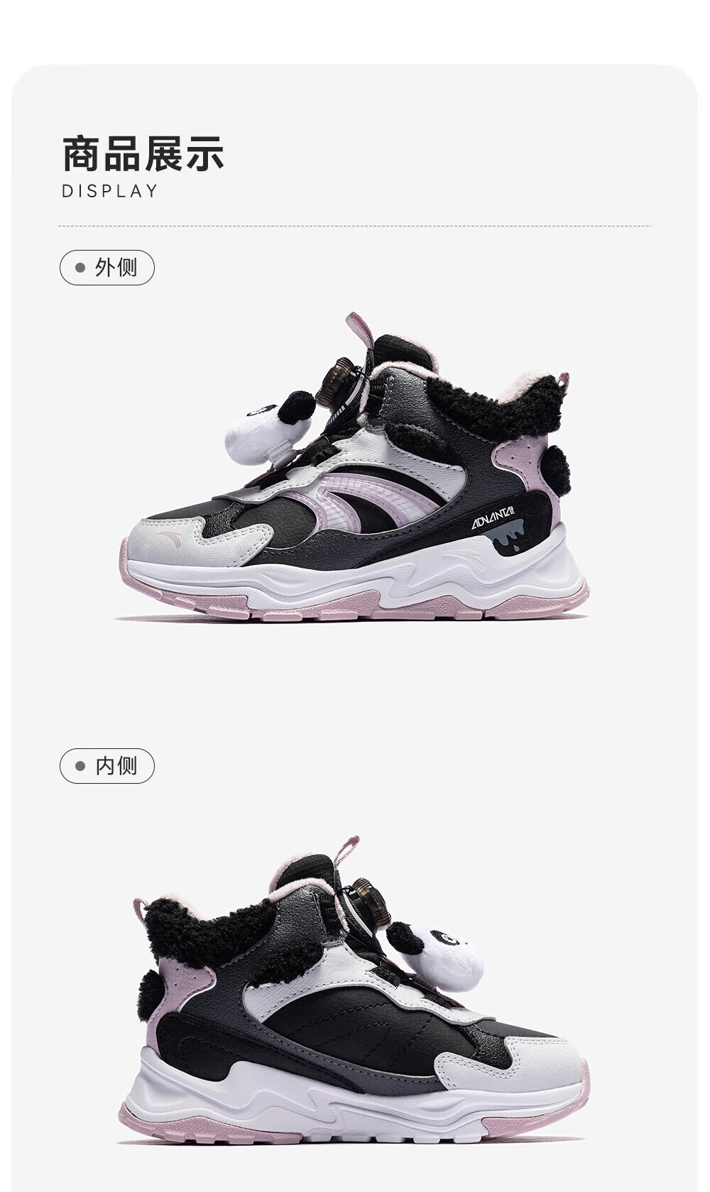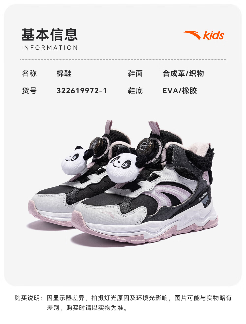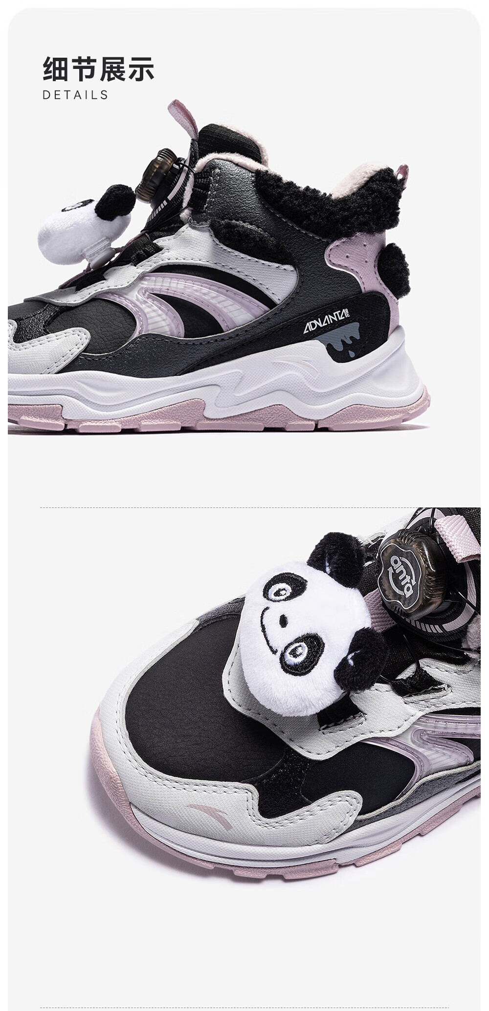ANTA Children's Shoes Girls' Flame Outdoor Series Water-Repellent Technology Cotton Shoes 322619972 Black/Sand Gray-1 31
