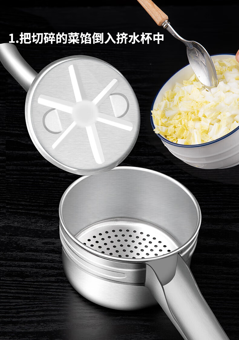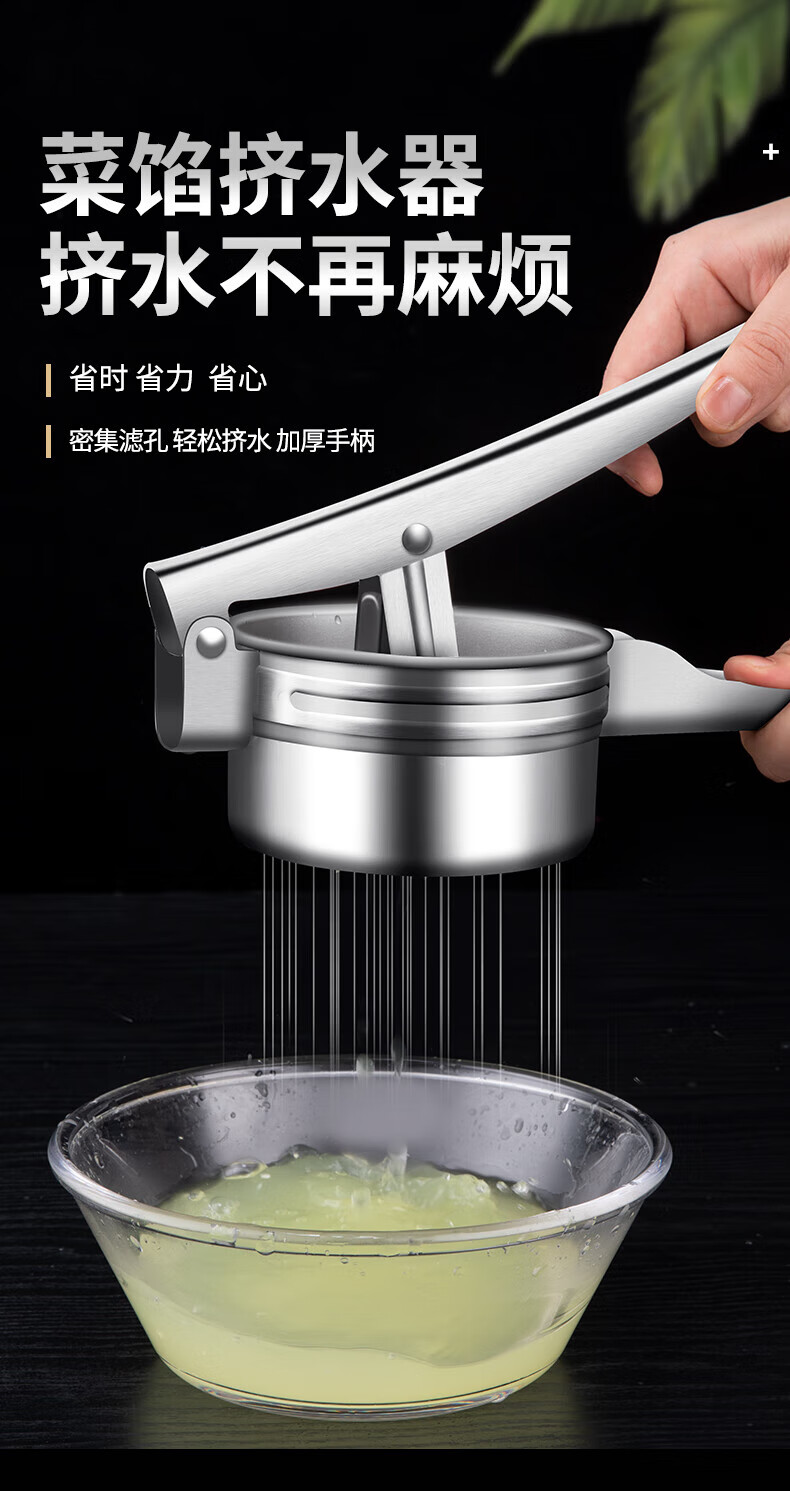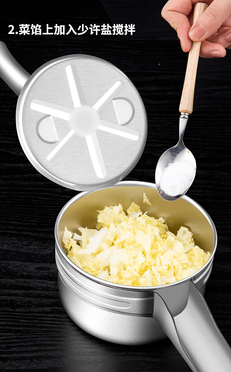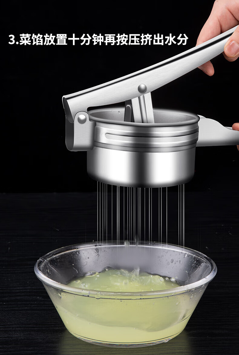 Midelei manual juicer water squeezer vegetable filling stainless steel household vegetable dehydration dumpling filling squeezed water pressure dish increased splash-proof model - stainless steel material bottom set