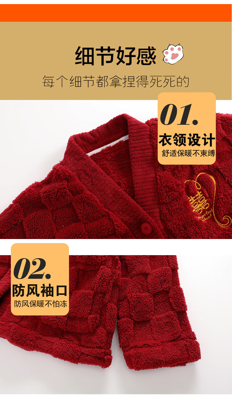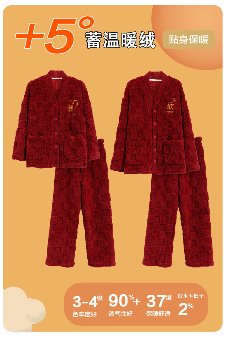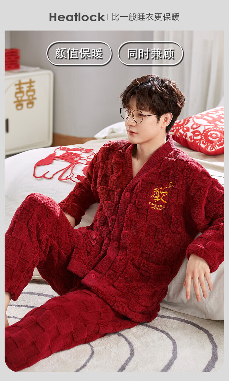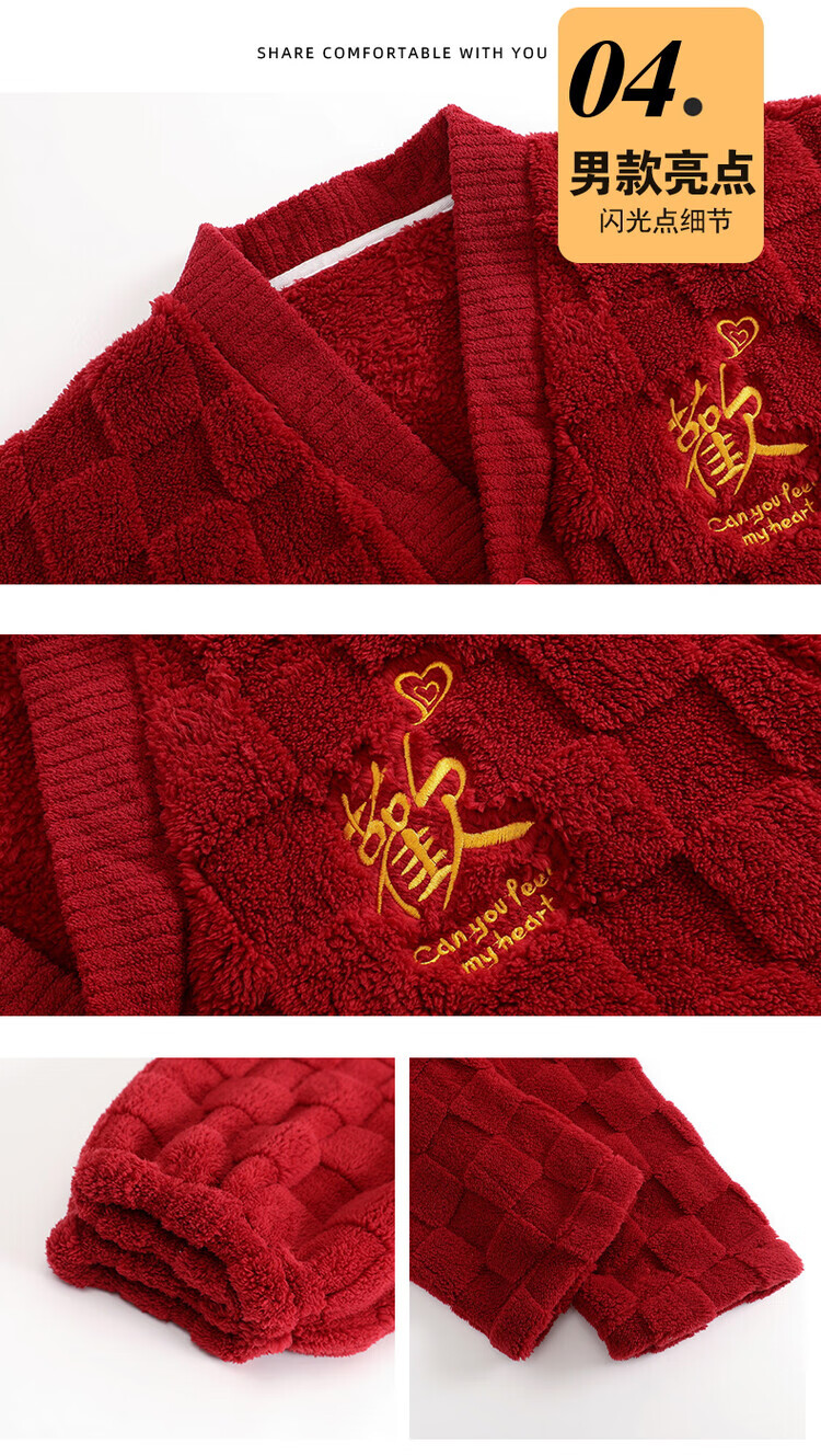 LangSha wedding couple pajamas autumn and winter style coral velvet thickened female bride bright red flannel newlywed men's home wear HMF-7815 M female M + male L