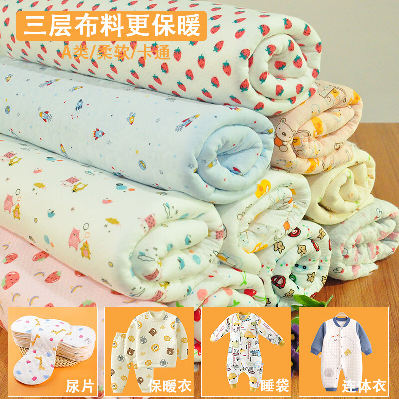 He Jiagong three-layer quilted fabric pure cotton thickened cartoon knitted quilted fabric three-layer baby warm autumn clothes sleeping bag empty excavator half meter long 1.8 meters wide multiple shots in a row