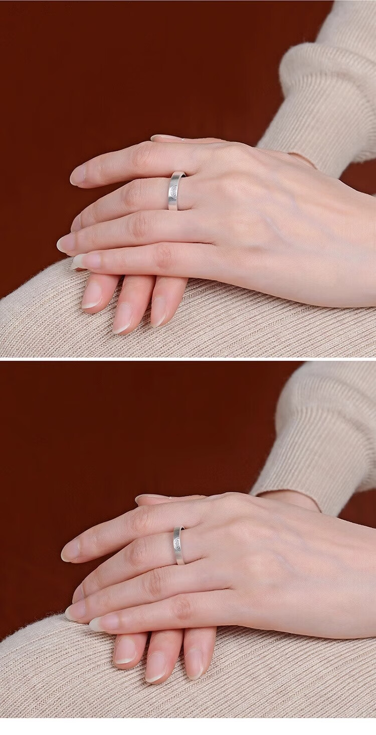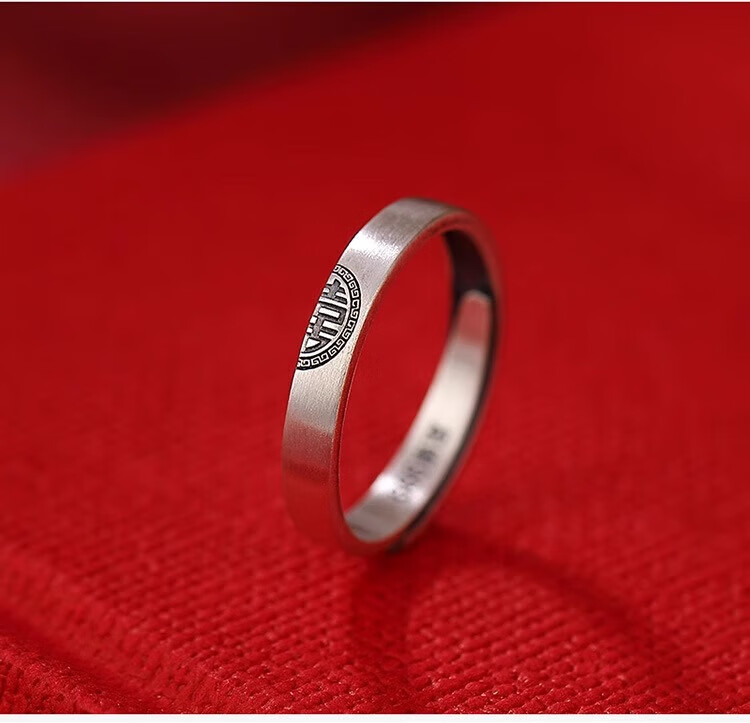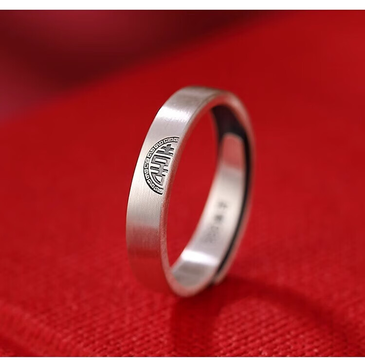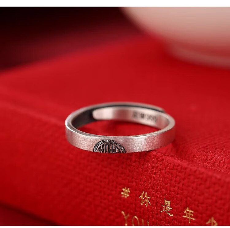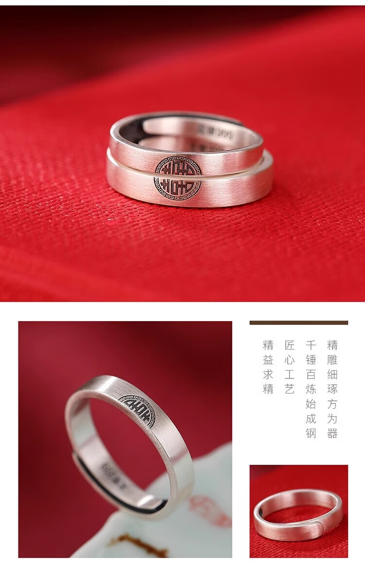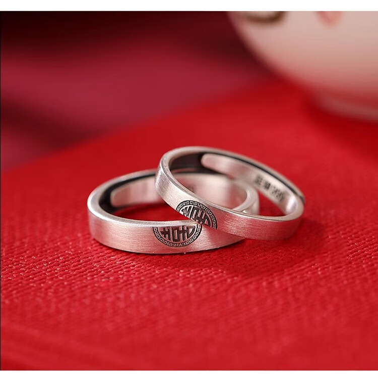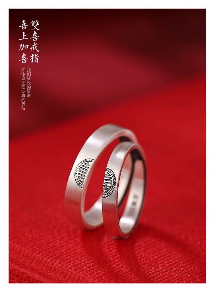Lao Fengxiang sterling silver Double Happiness Couple Ring Retro Distressed High-end Gift Box Anniversary Birthday Gift for Girlfriend and Wife Double Happiness Couple Ring-Men's Brand Gift Box