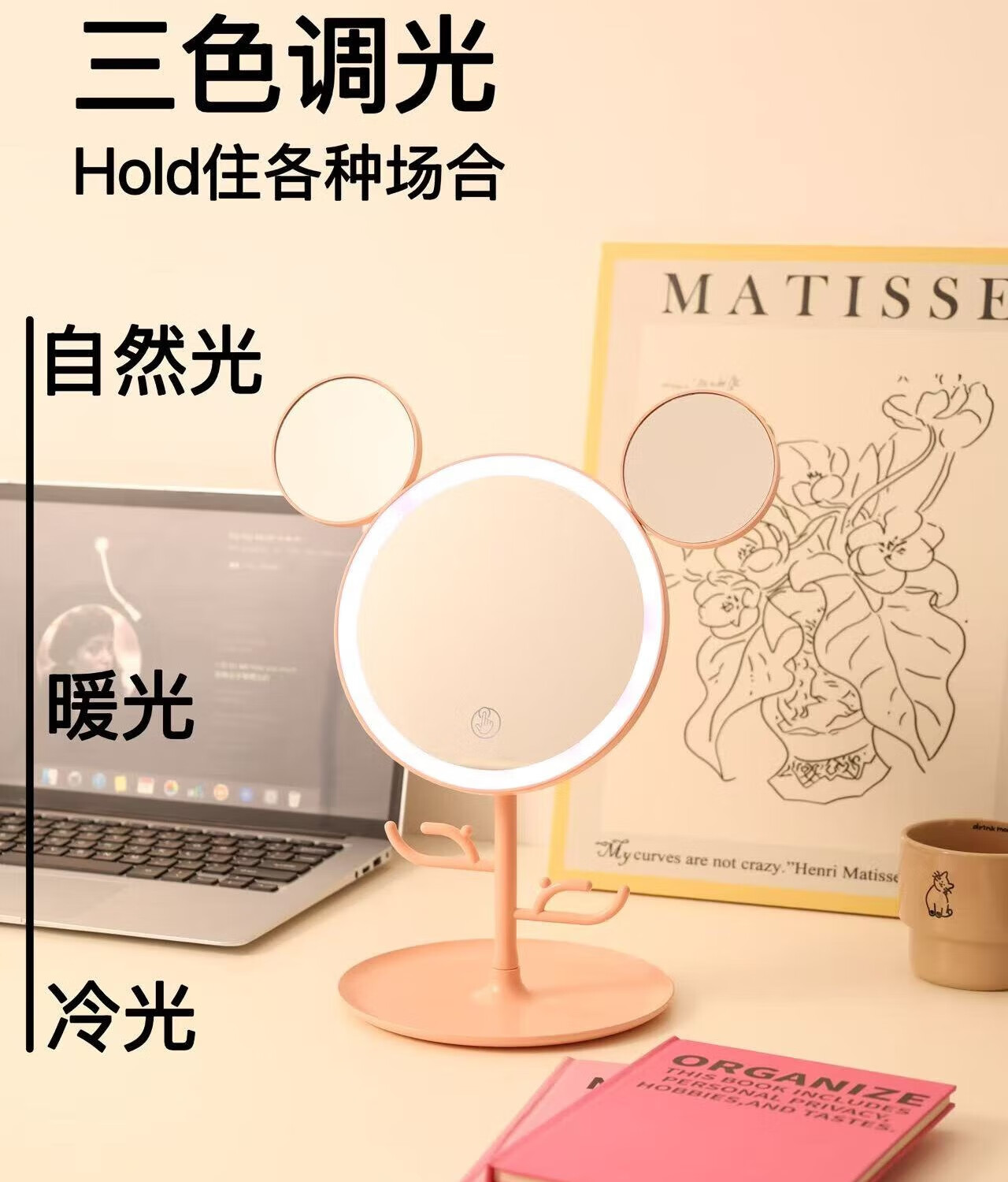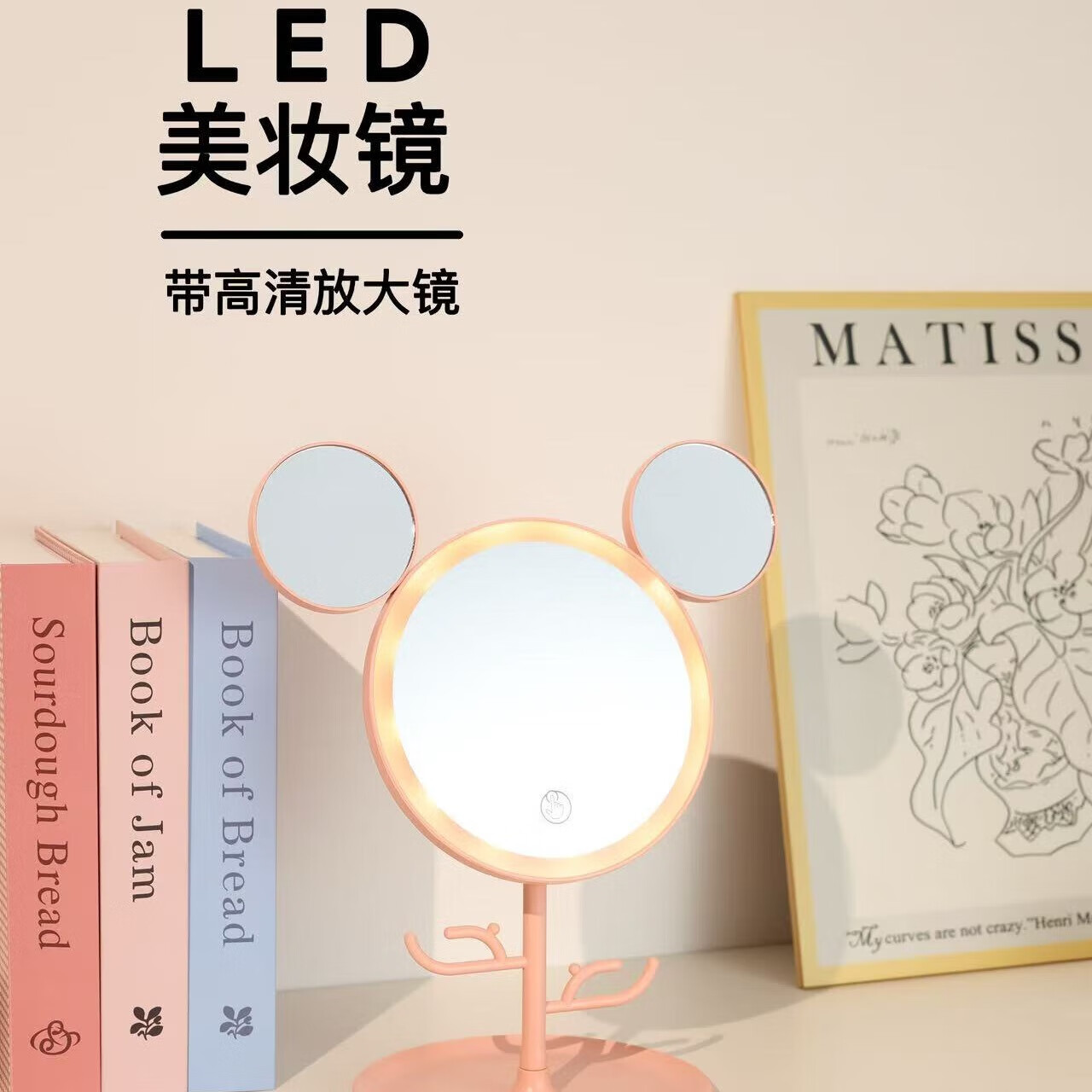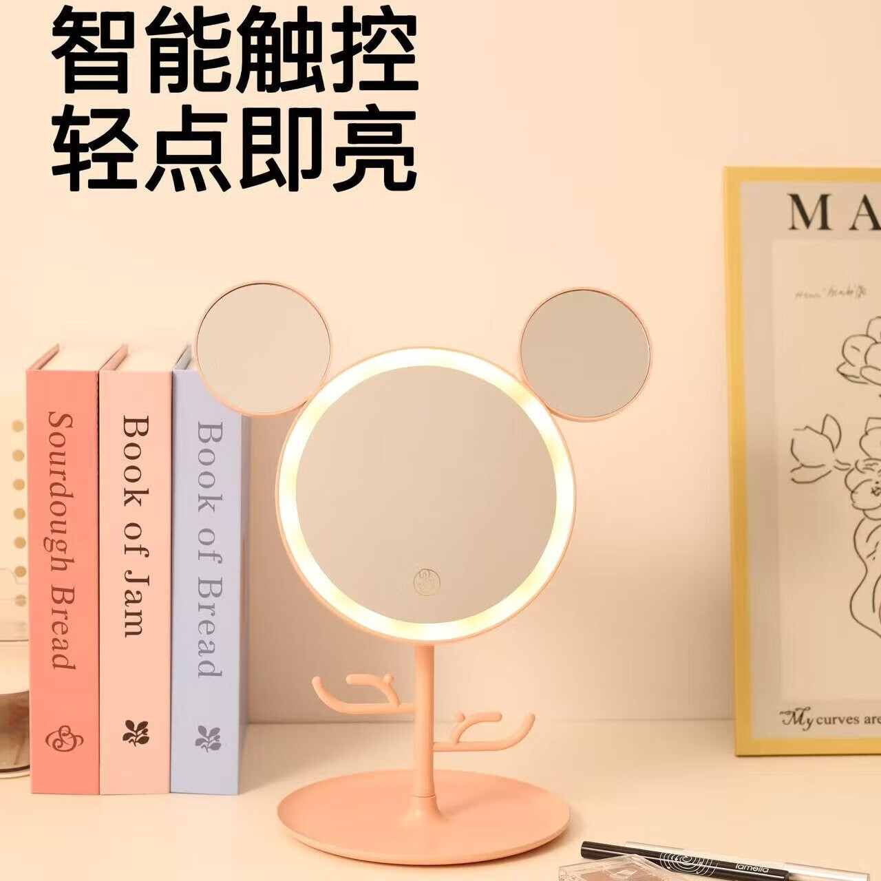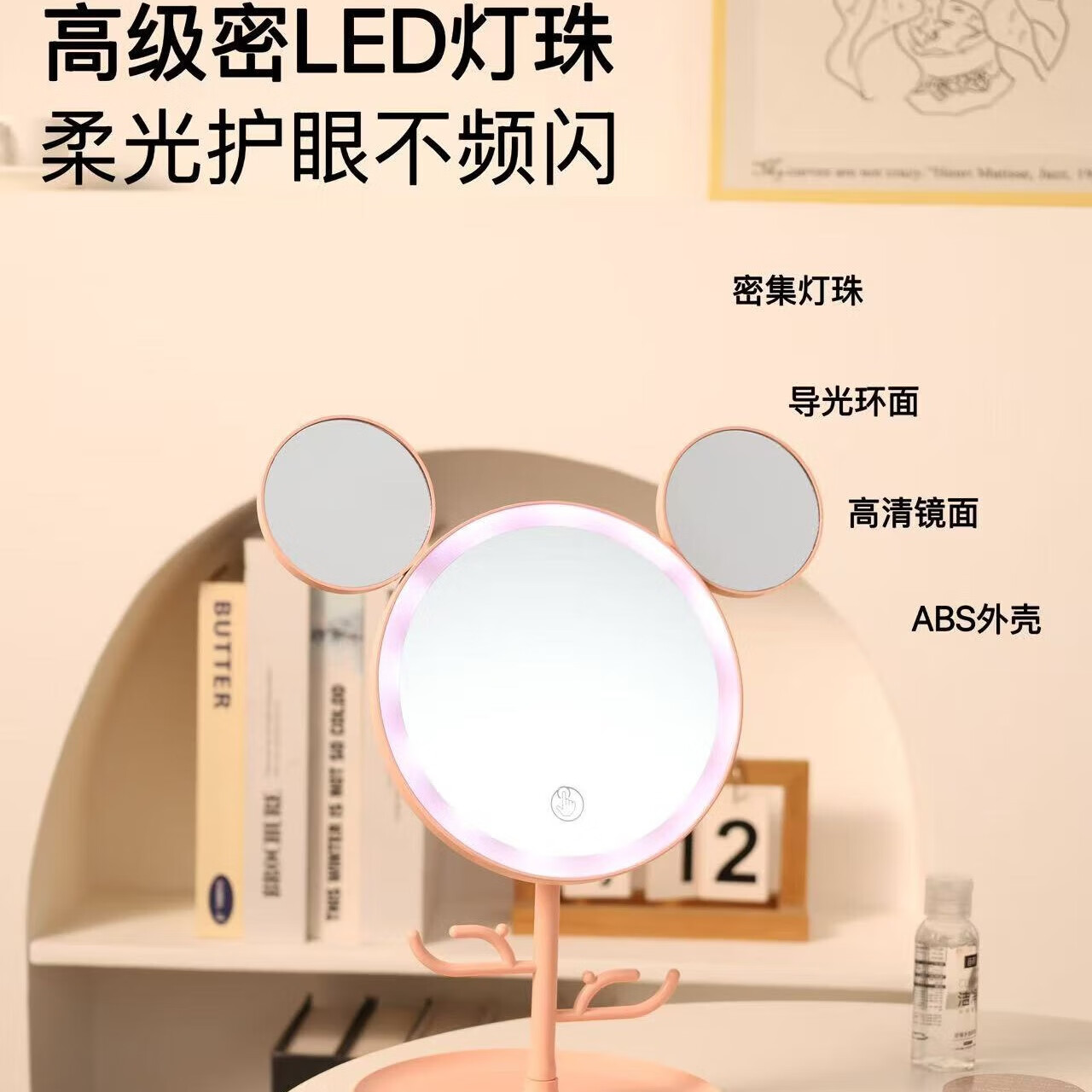 Led round makeup mirror with light desktop ins home makeup mirror student dormitory office internet celebrity luminous mirror fast charge one-size-fits-all