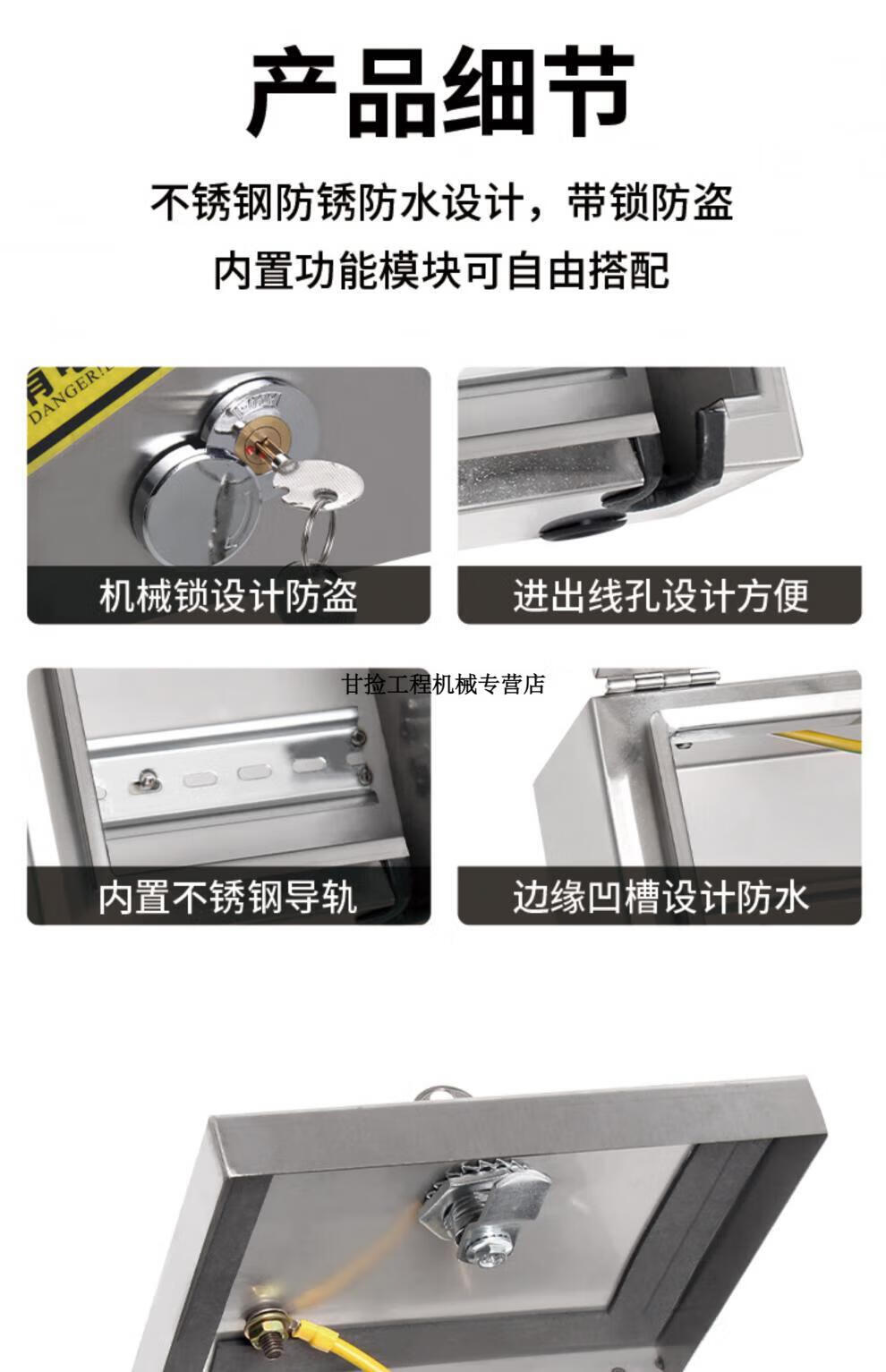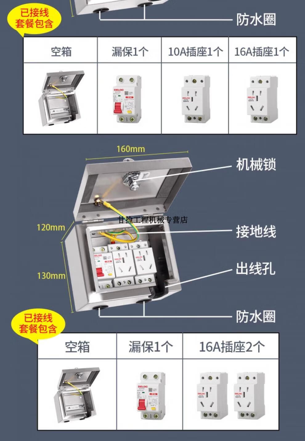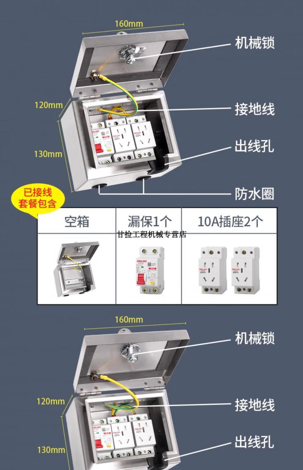 04 stainless steel outdoor waterproof all-inclusive socket box leakage protection electric vehicle distribution box 4-10 small size 201 empty box (with guide rail) medium size 201 5 10A sockets (wired)