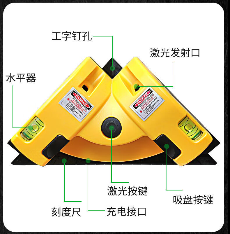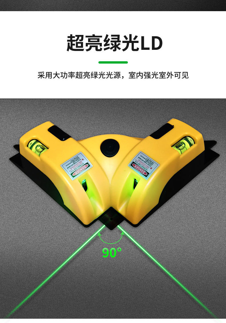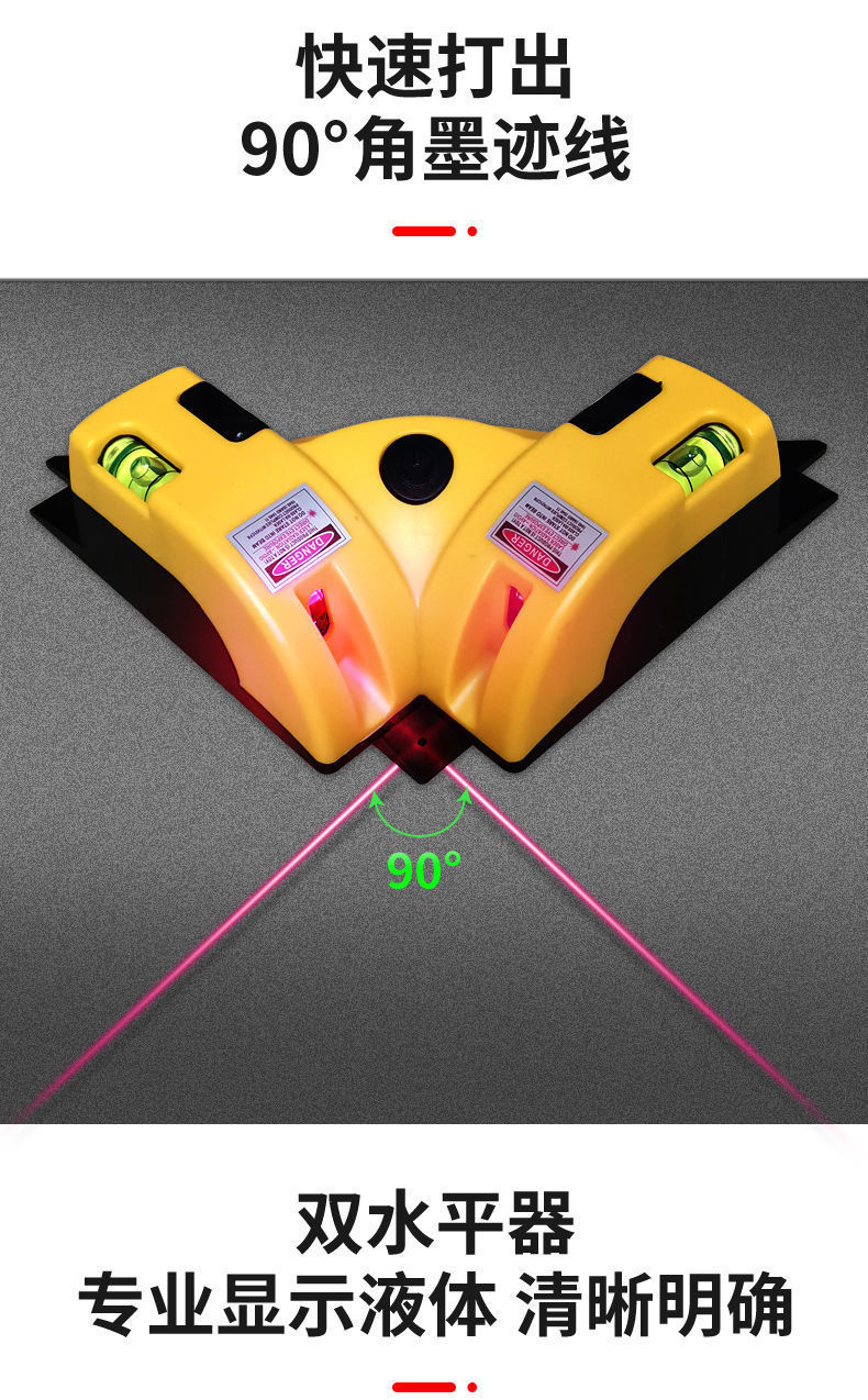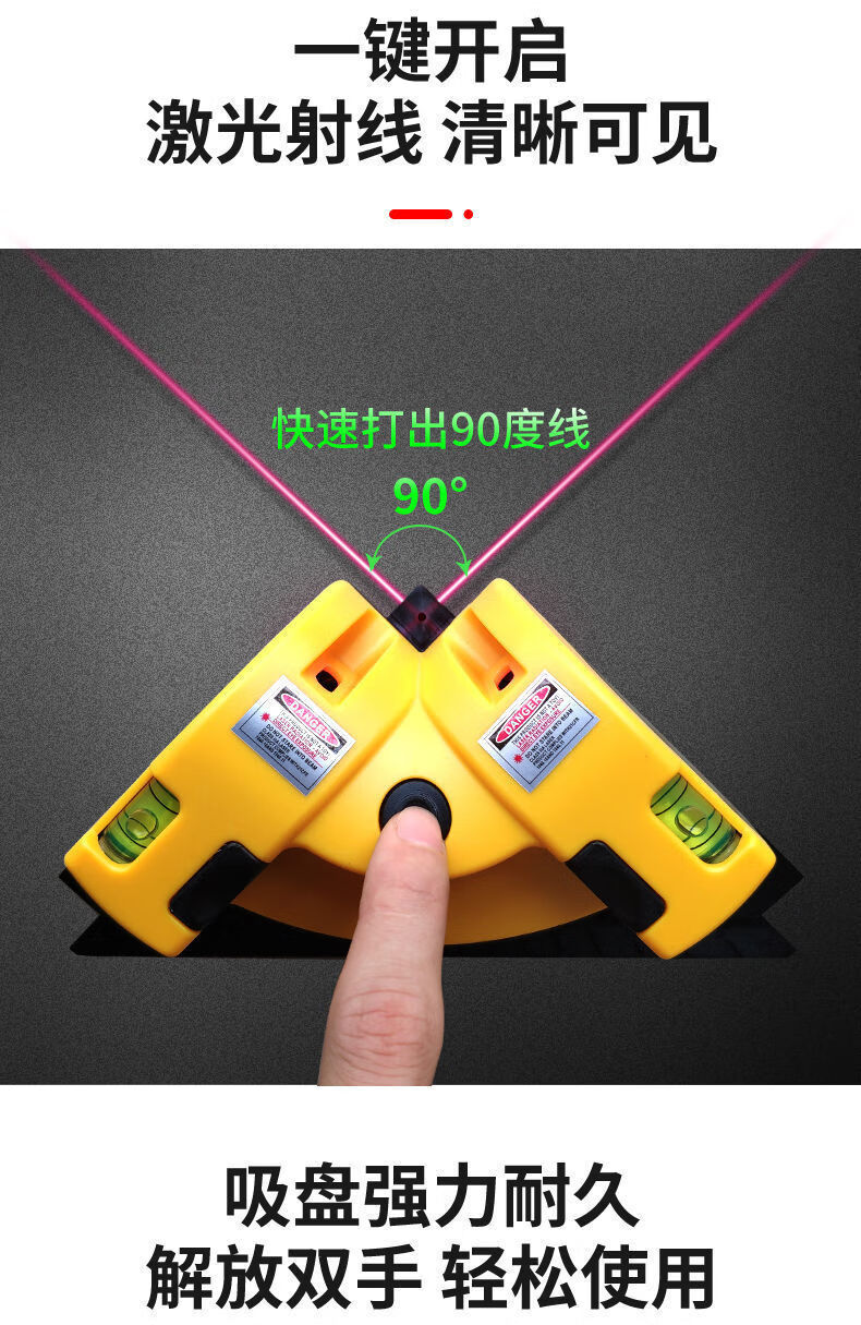 RSRDDY laser right-angle floor level high-precision multi-functional horizontal right-angle ruler 90 degree angle ruler 01 red light bottom with suction cup + AA battery