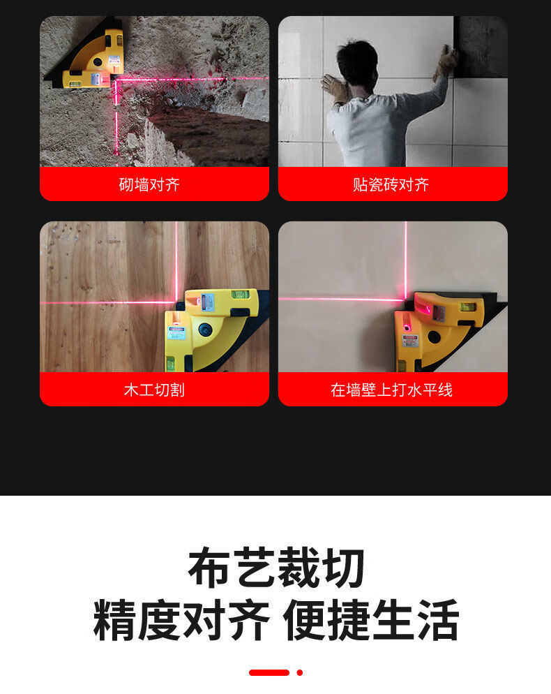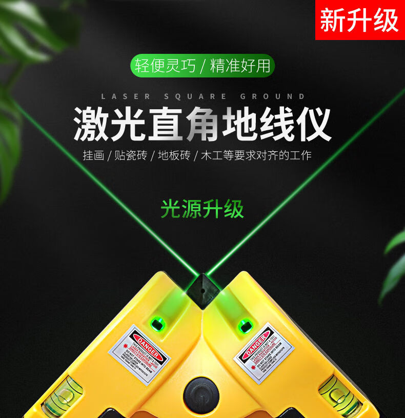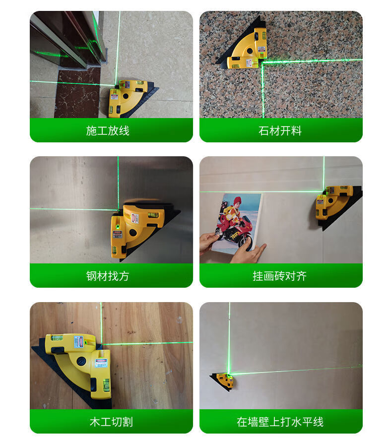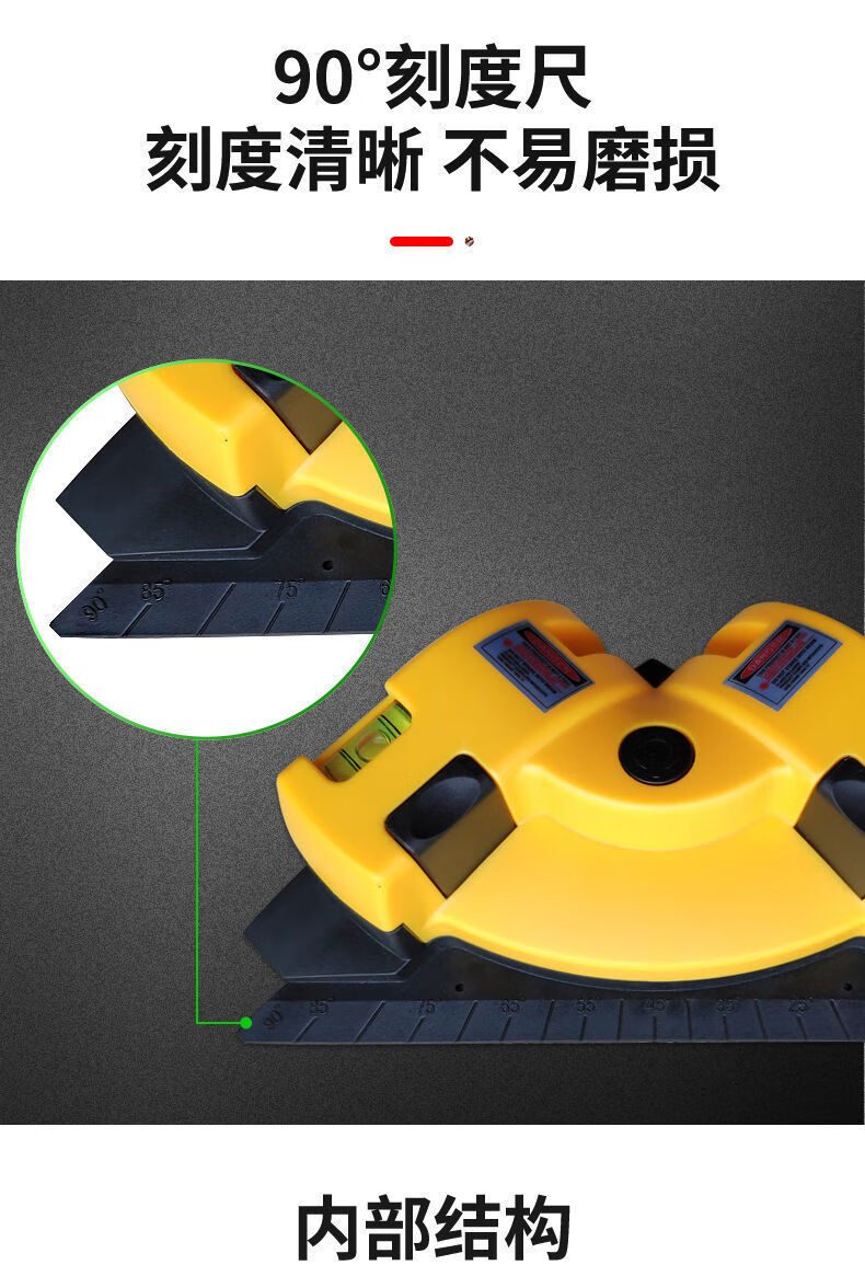 RSRDDY laser right-angle floor level high-precision multi-functional horizontal right-angle ruler 90 degree angle ruler 01 red light bottom with suction cup + AA battery