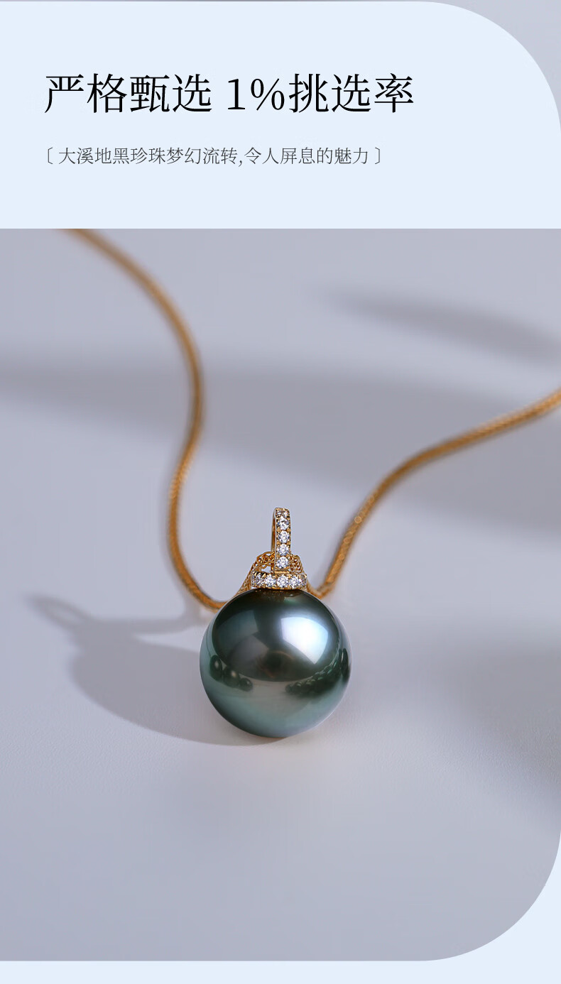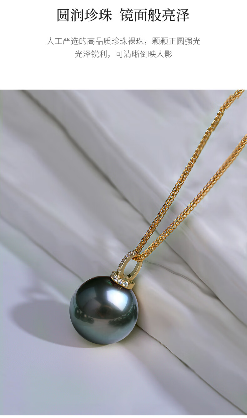 Duyi Internet celebrity baby bottle style Tahitian black pearl pendant single elegant 18K gold black seawater pearl necklace A grade/slight flaws peacock green 11-12mm