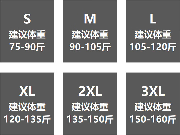 China (cm) 165 / 88-90 170 / 96-98 175 / 108-110 180 / 118-122 185 / 126-130
