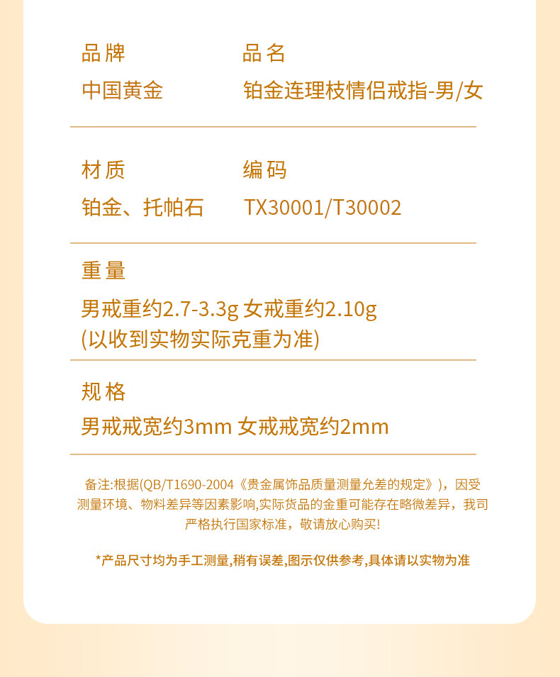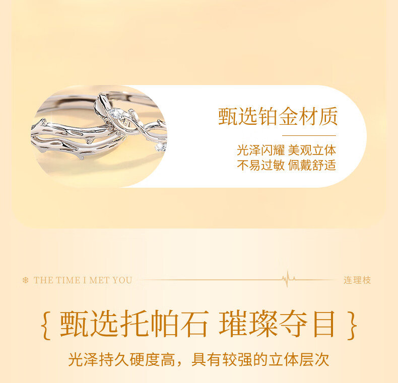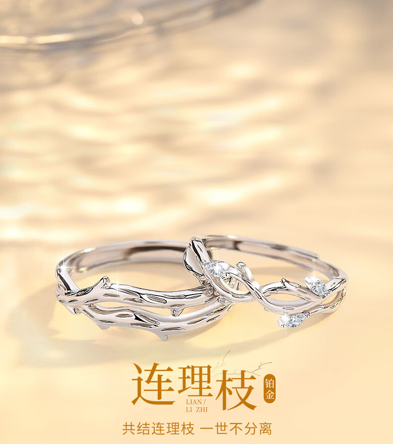 China Gold (CHINA GOLD) Platinum Couple Ring with Branches Platinum Pair of Rings Birthday Gift for Girlfriend and Wife Wedding Anniversary Romantic Platinum Branch Ring-Female