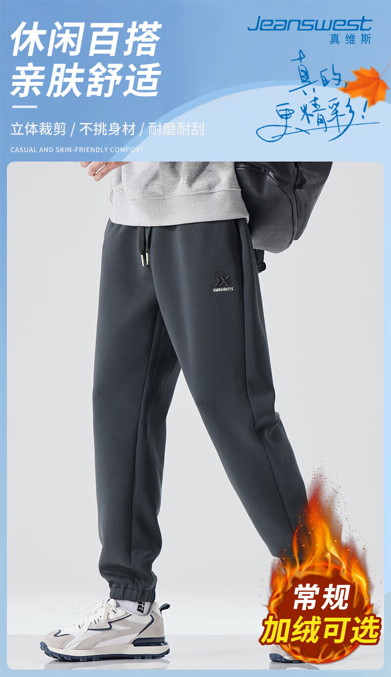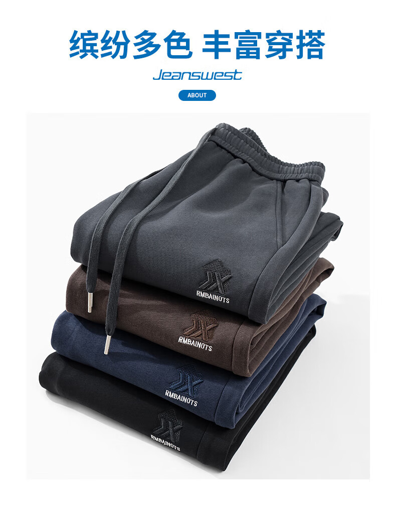 Jeanswest Casual Pants Men's Autumn and Winter 2025 New Thick Velvet Men's Pants Loose Leg-tie Sports Pants Men's Coffee 4XL