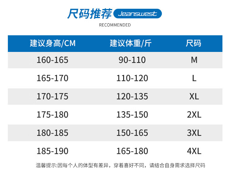 China (cm) 165 / 88-90 170 / 96-98 175 / 108-110 180 / 118-122 185 / 126-130