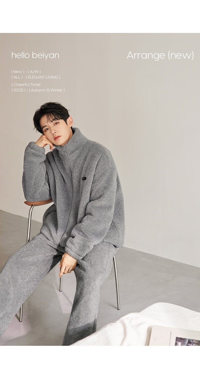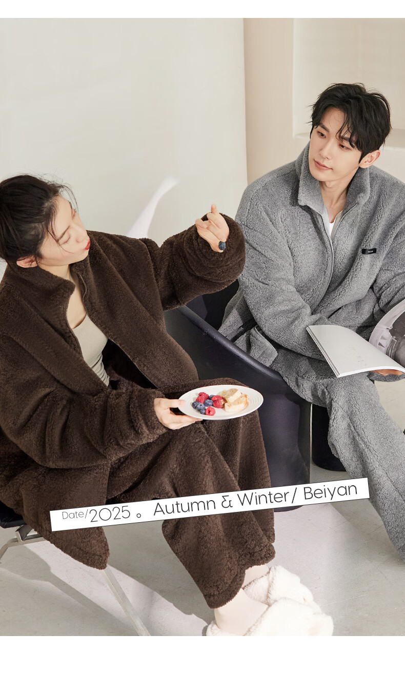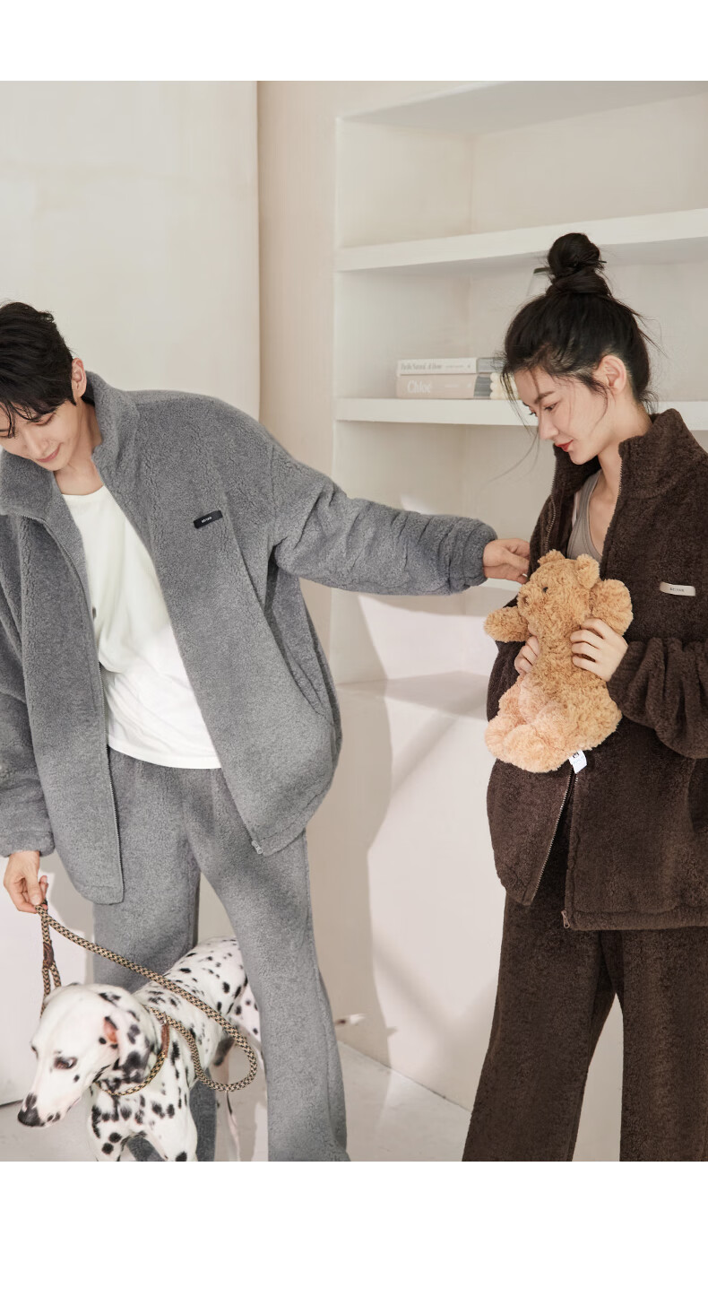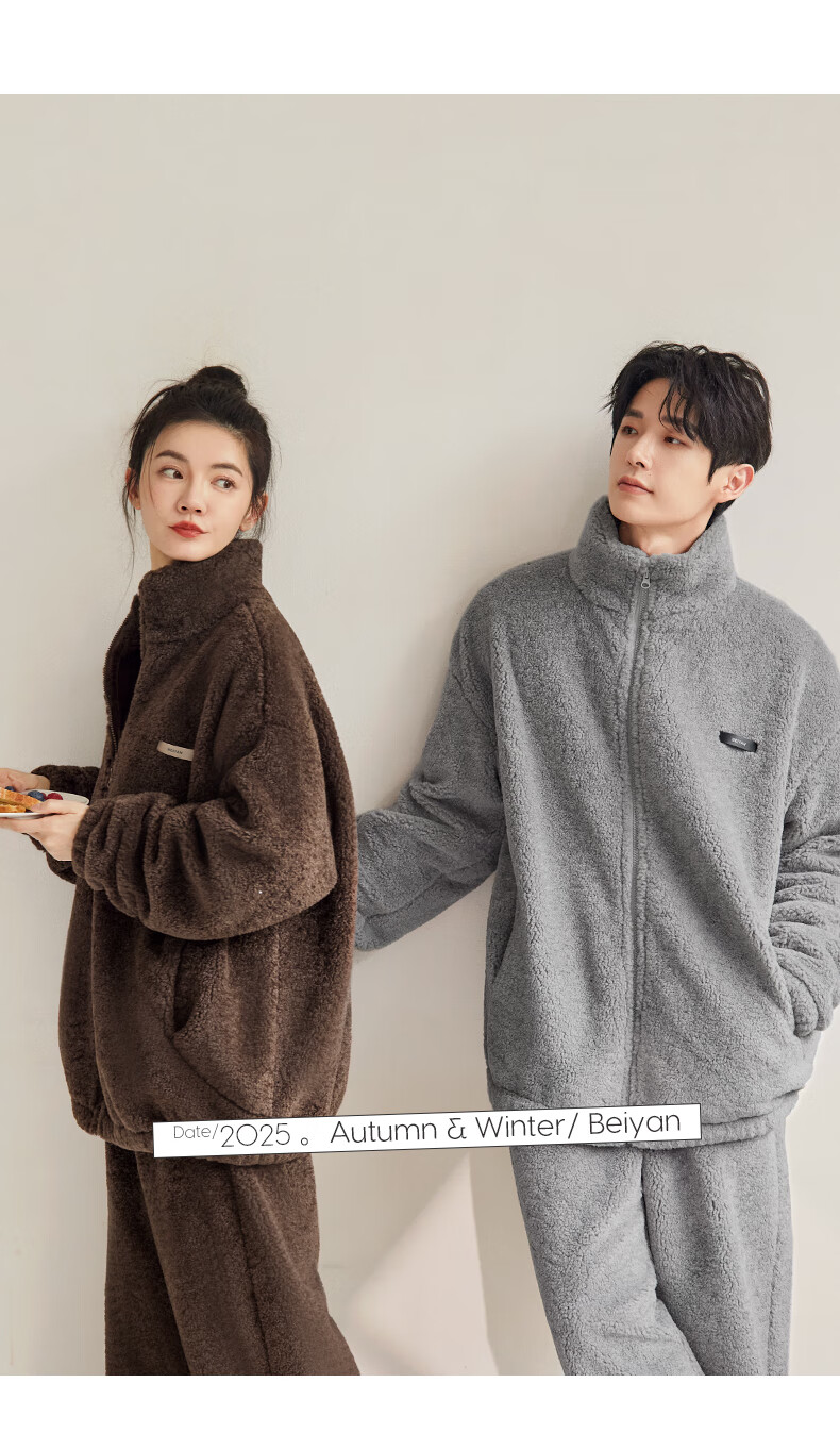 Beiyan lamb velvet couple pajamas for men and women in autumn and winter thickened warm coral velvet home clothes high collar zipper cardigan set F60548 women's L