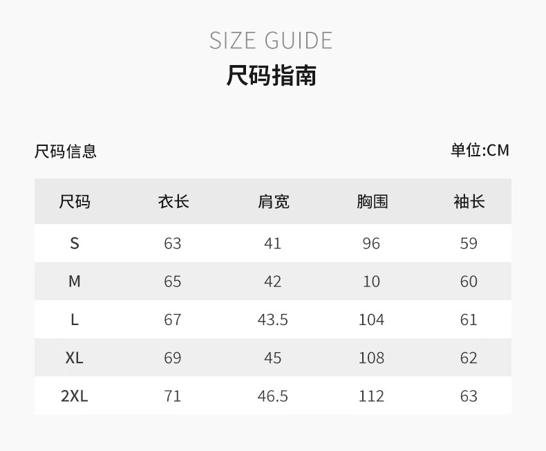 China (cm) 160-165/84-86 165-170 / 88-90 167-172 / 92-96 168-173 / 98-102 170-176 / 106-110