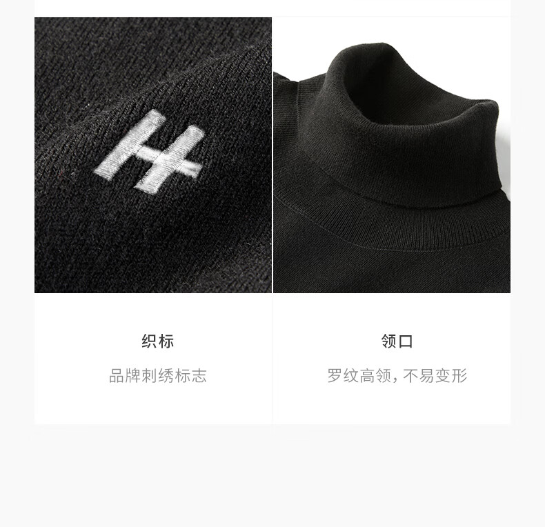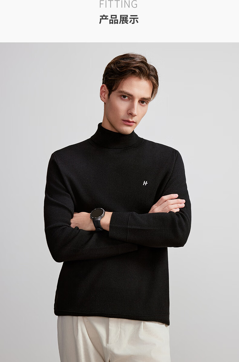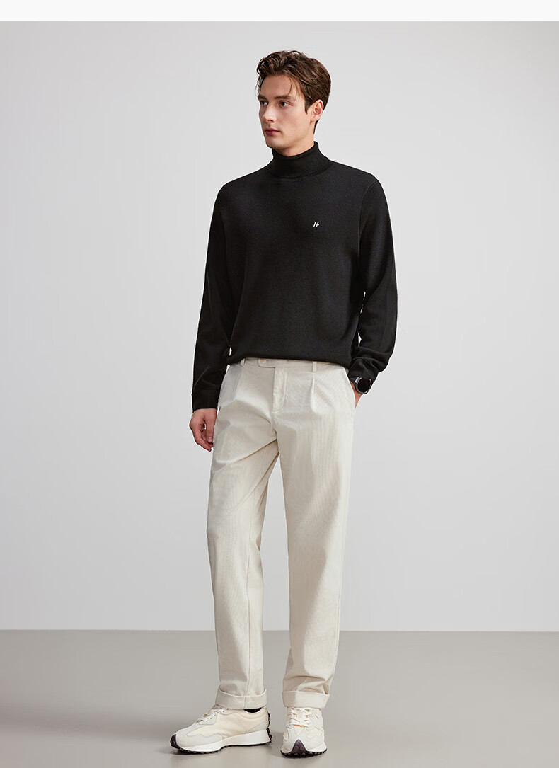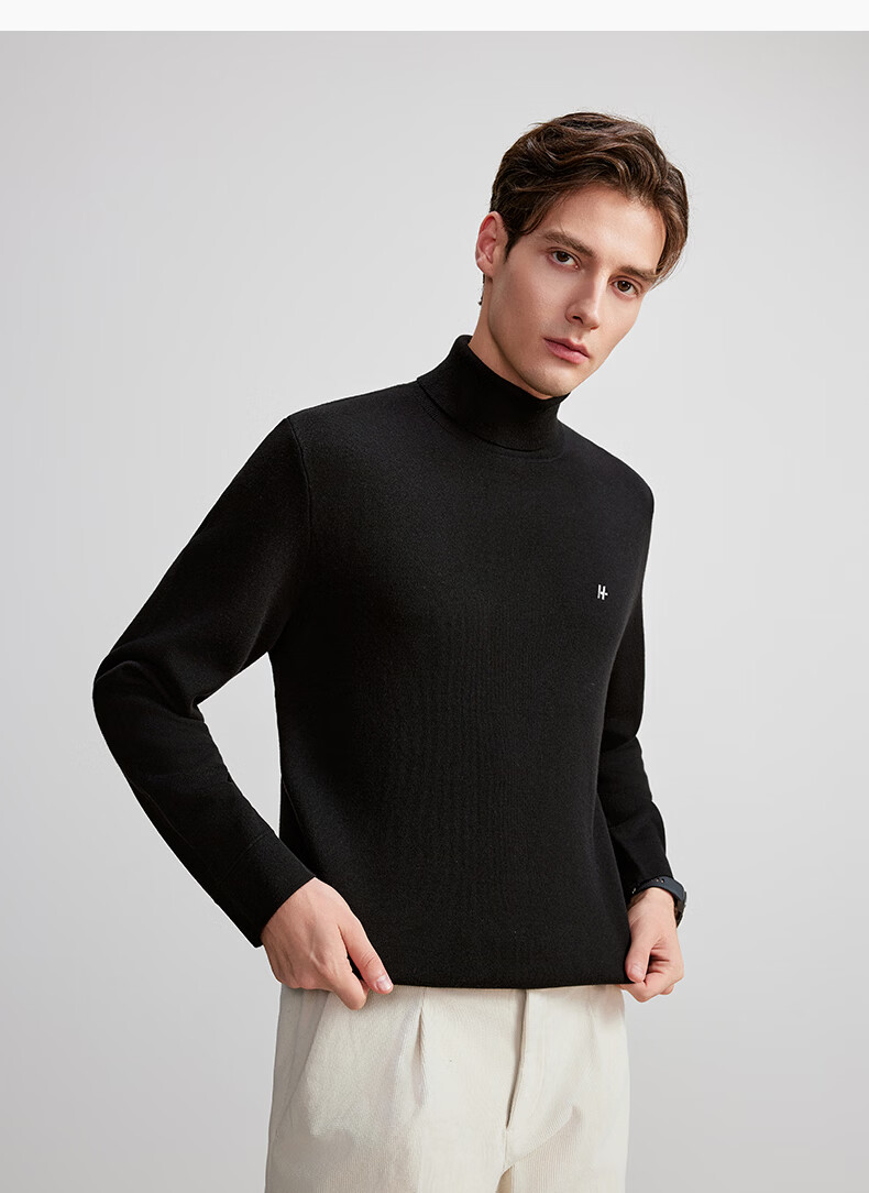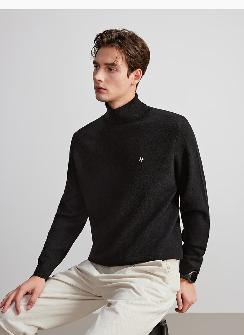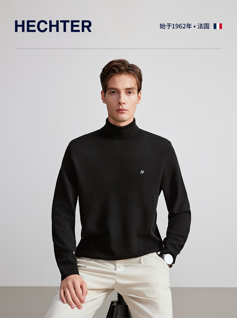 HECHTER Turtleneck Wool Sweater Comfortable Pullover Autumn and Winter Warm Men's Tops Everyday Versatile Bottoming Shirt France Black - Hot Selling Color XL