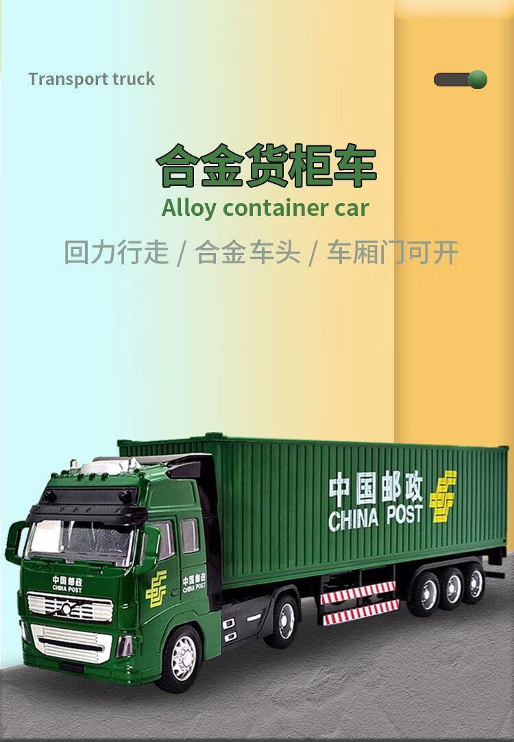 Sweet Lemon Container Toy Car China Post Large Container Truck Truck SF Express Truck Semi-trailer Model Boy Large Alloy Container Truck Black Container Truck