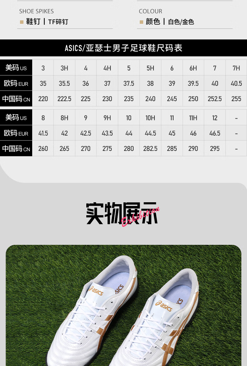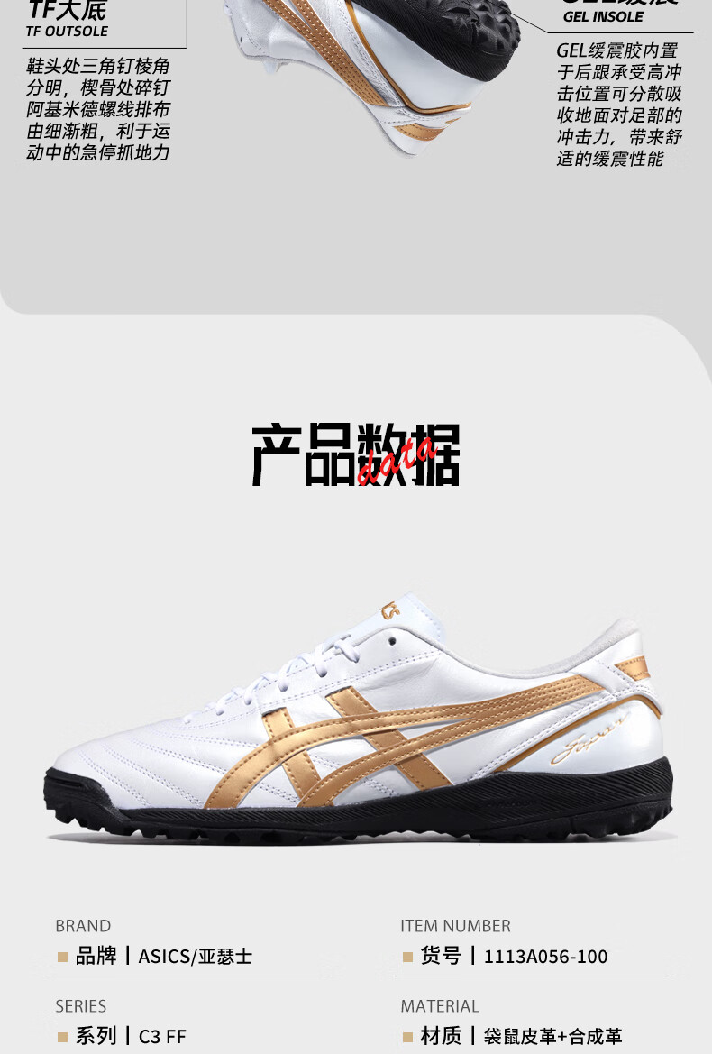 ASICS football shoes tf broken nail training shoes C3 FF kangaroo leather high-end cushioning grass sports shoes white/gradient blue 1113A056-101 41.5