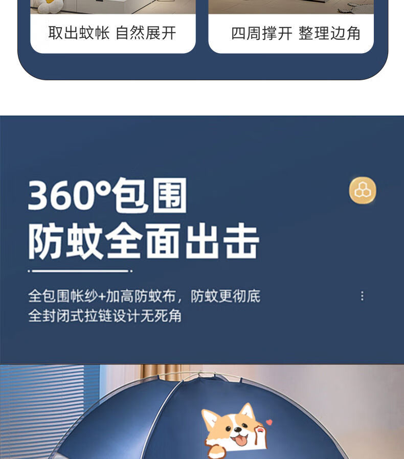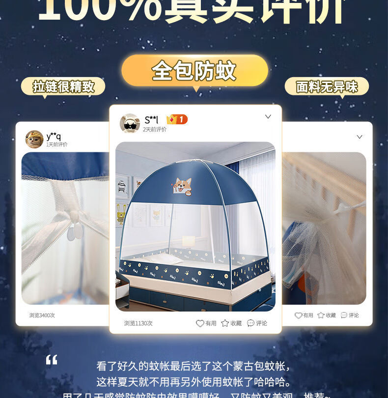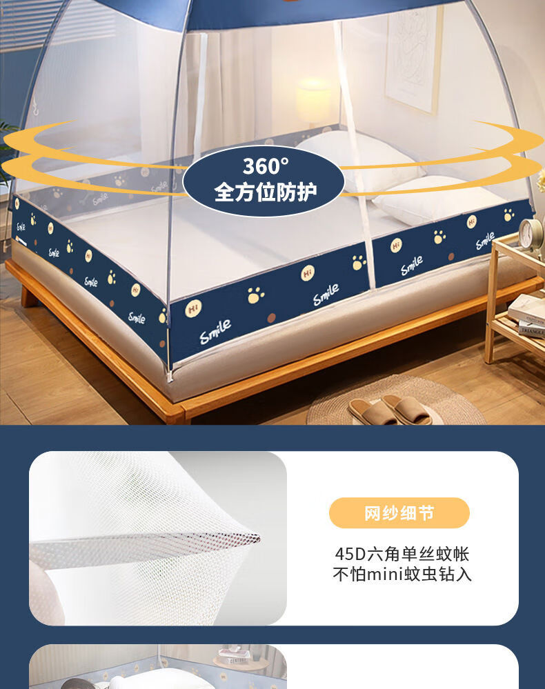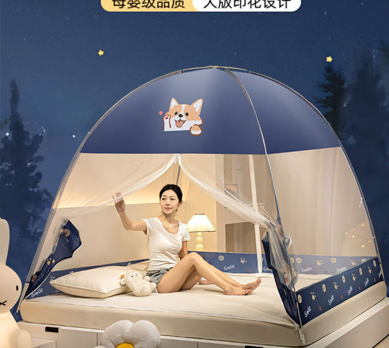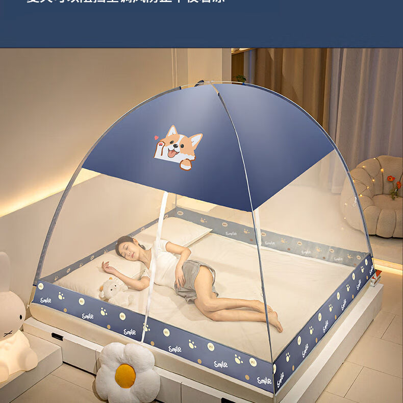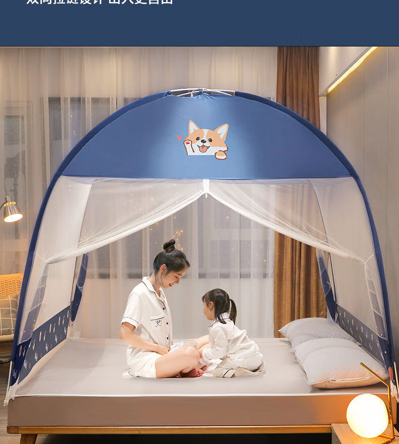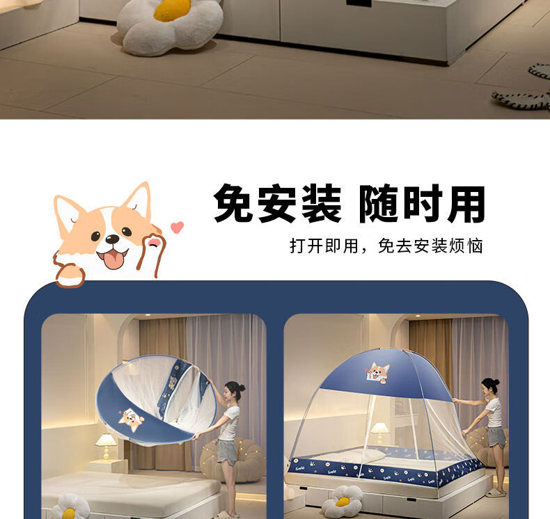 Yusenyi customized 2024 new yurt mosquito net for home bedroom, no installation required for student dormitory, anti-fall children's folding bed, Care Bears - dustproof style, 1 point 2m bed, universal, 1 point 2 wide x 2 point 0 long, double door, no installation needed