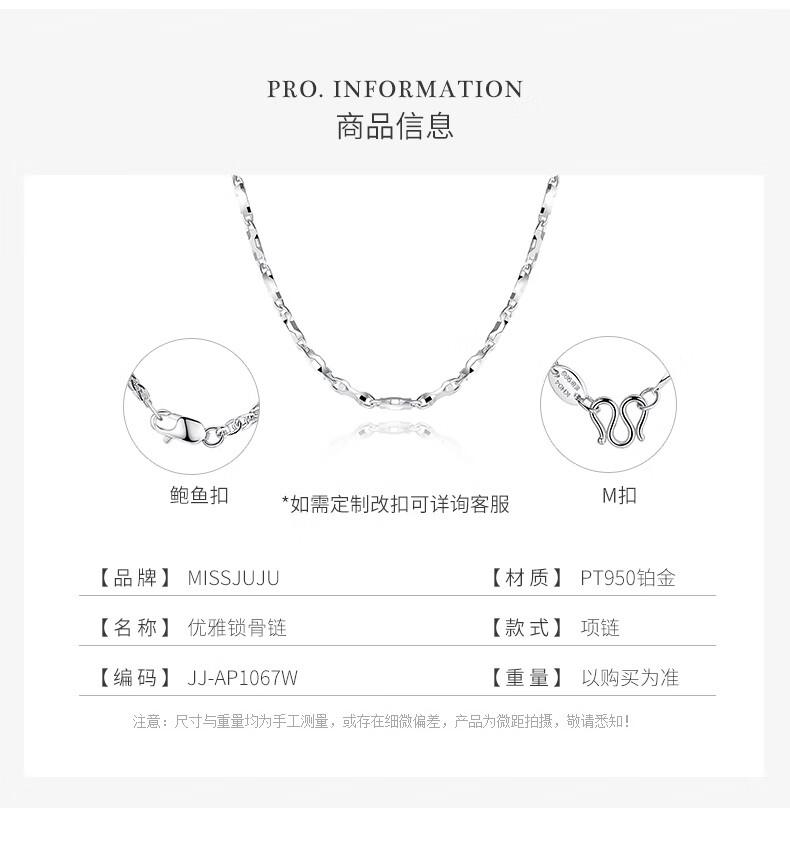 Miss JuJu platinum necklace women's new PT950 platinum Great Wall chain solid with pendant ingot chain plain chain weight 5.8-6.0g length 48cm thick about 1.2mm M buckle