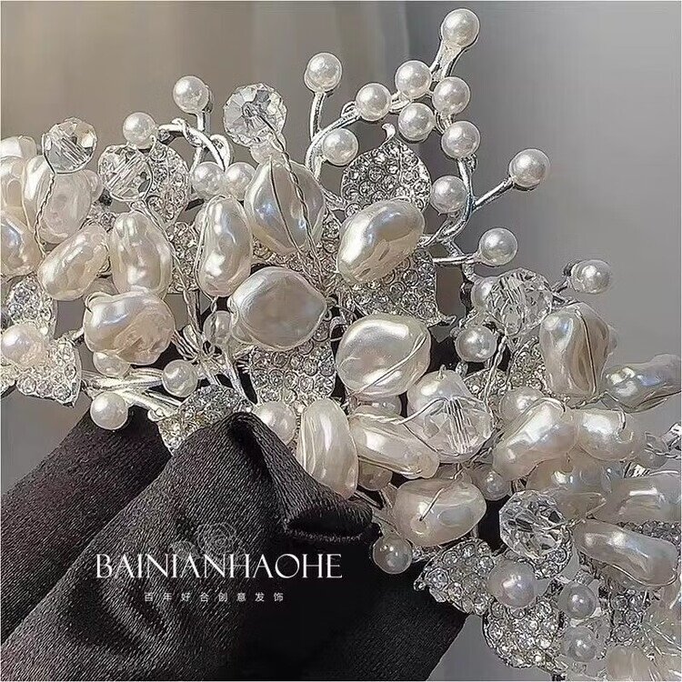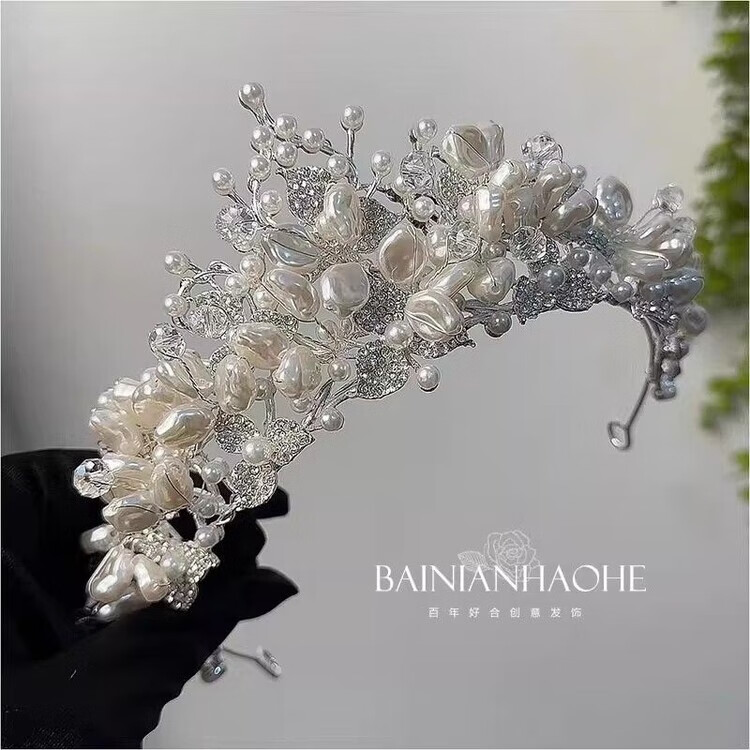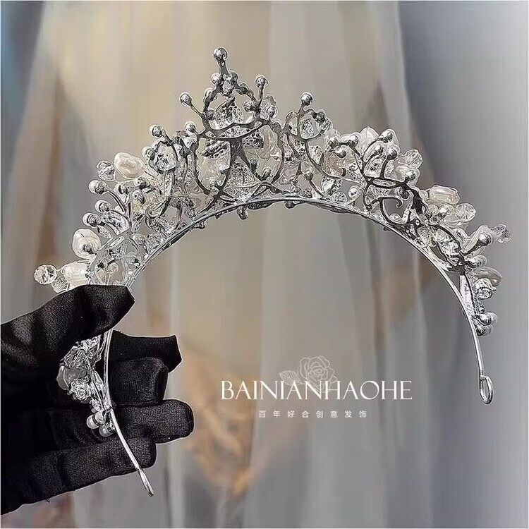 French crown French heavy industry luxury pearl crystal princess birthday crown grand bride main wedding dress headdress high luxury pearl crystal crown