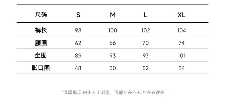 Outseam (cm) 99 cm 101.5 cm 104 cm 106.5 cm 109 cm