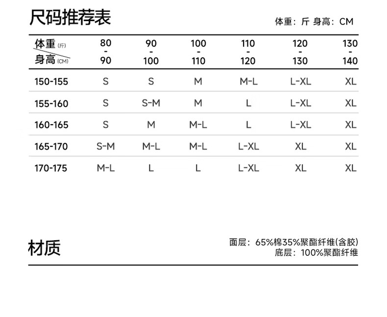 China (cm) 160-165/84-86 165-170 / 88-90 167-172 / 92-96 168-173 / 98-102 170-176 / 106-110