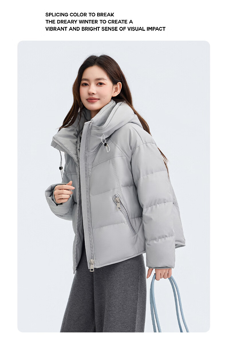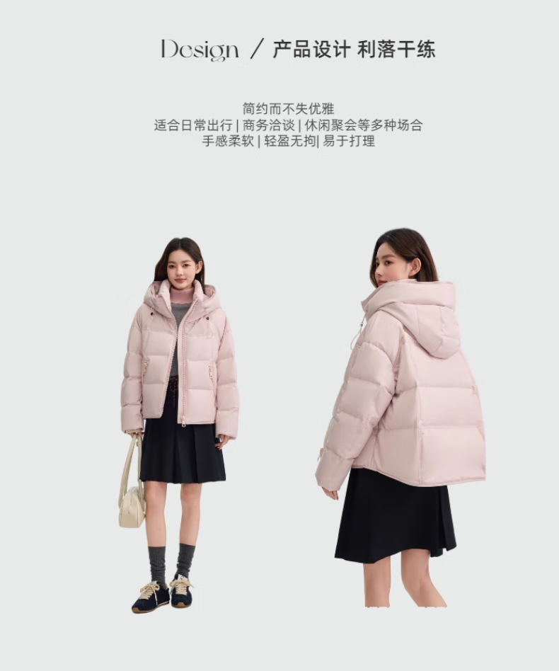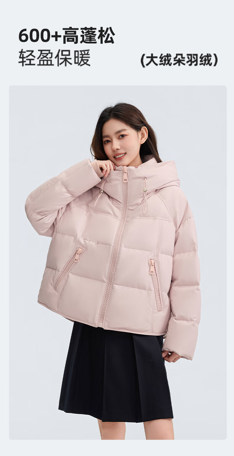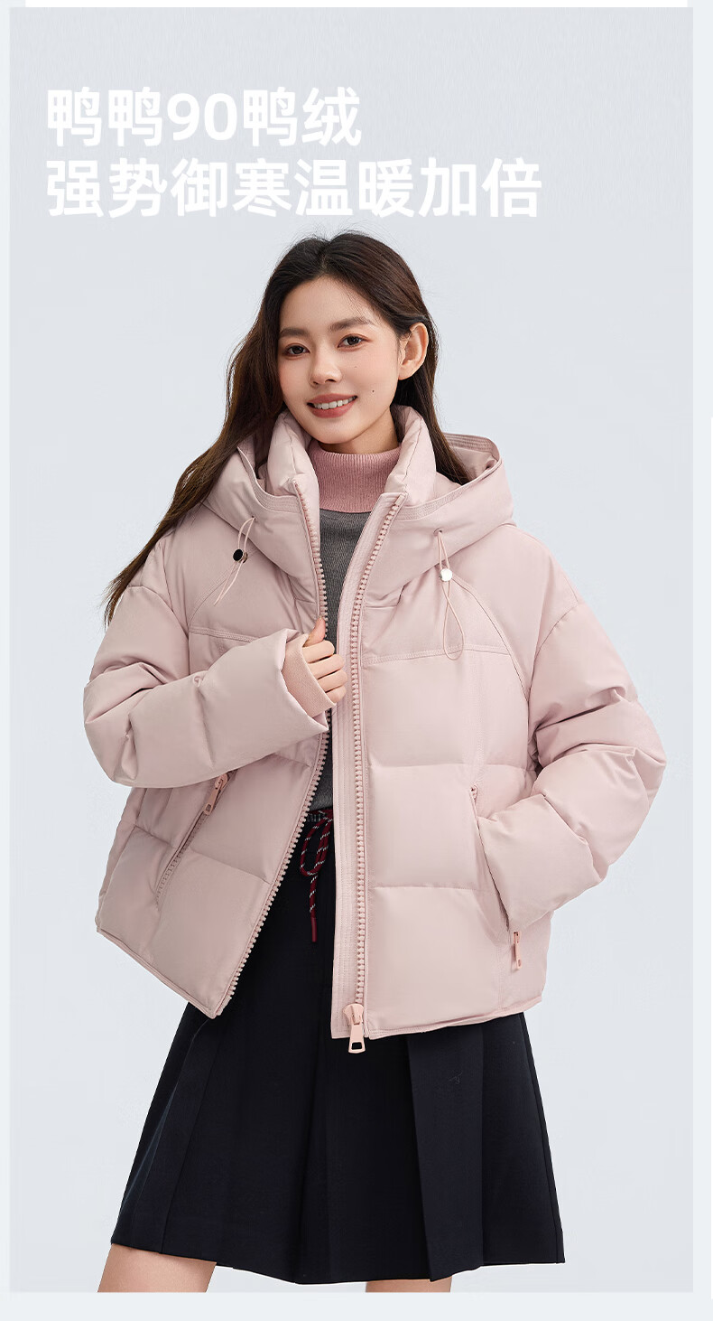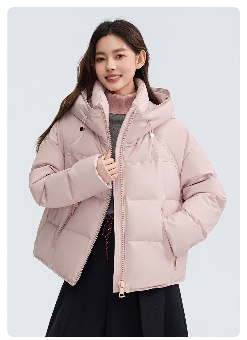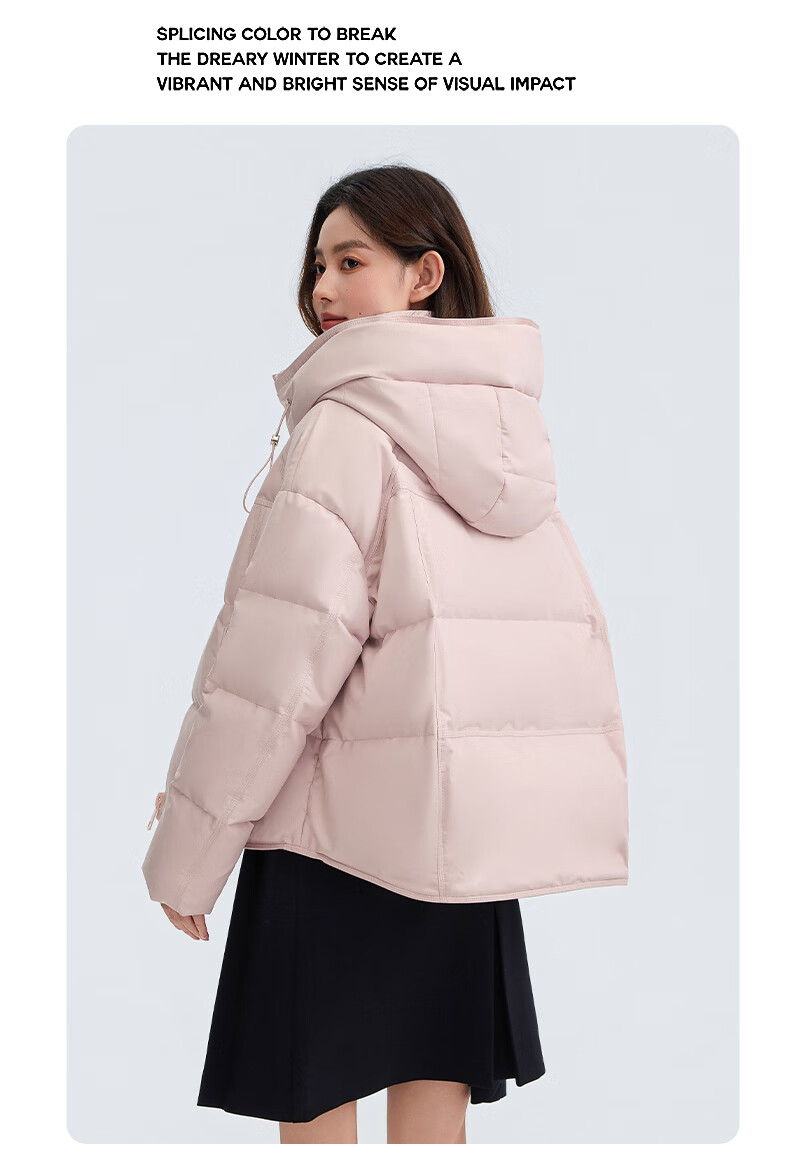 YAYA Down Jacket Women's Short 2025 Winter New Fashion Korean Style Hooded Barn Style Warm Down Jacket HT Lotus Pink M (160)