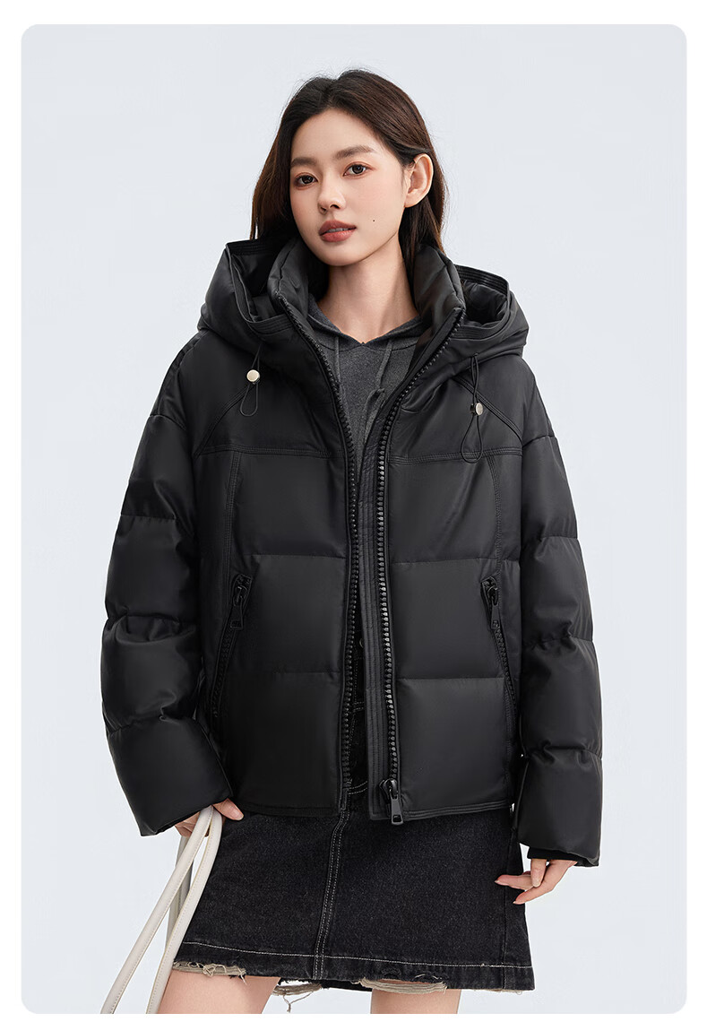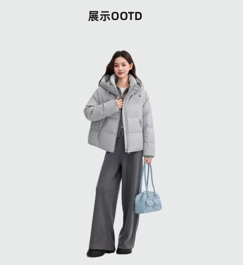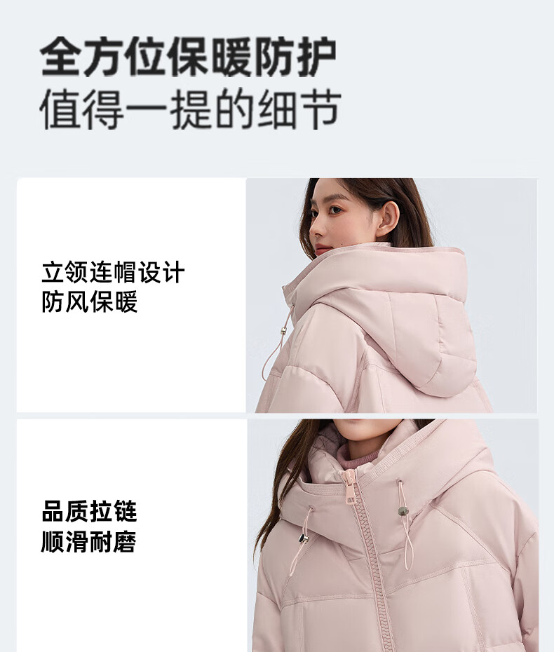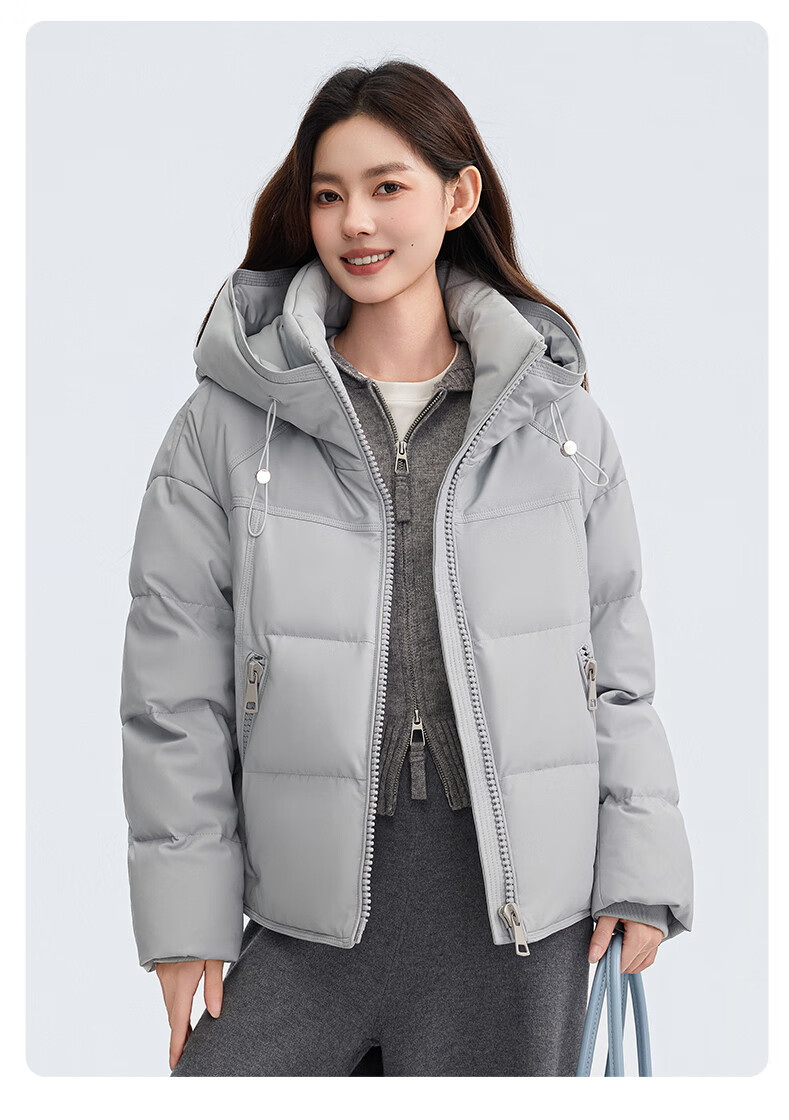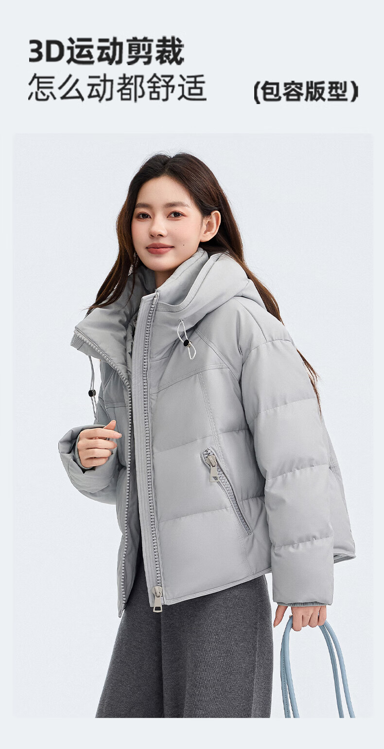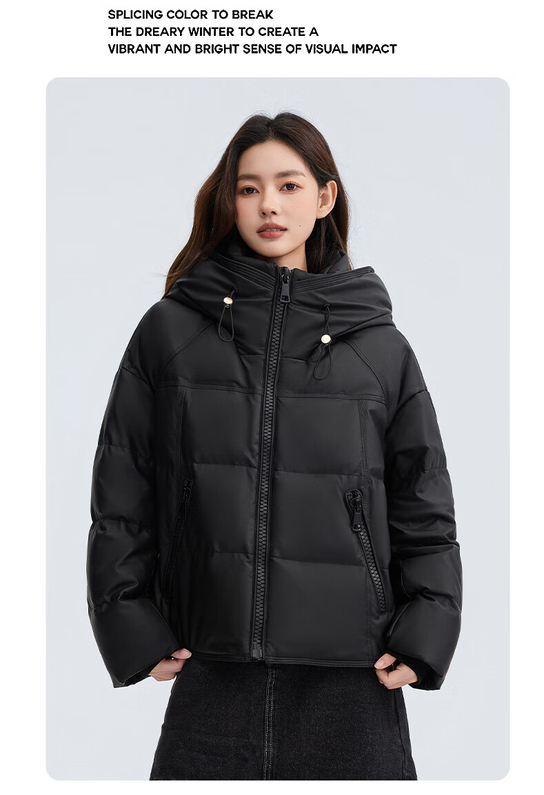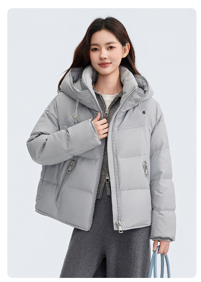 YAYA Down Jacket Women's Short 2025 Winter New Fashion Korean Style Hooded Barn Style Warm Down Jacket HT Lotus Pink M (160)