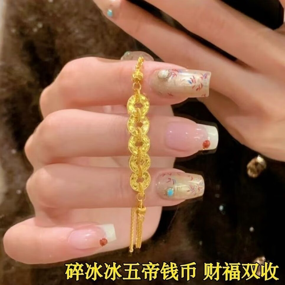 The new Five Emperors Explosive Ice Golden Bracelet for women, which does not fade and has good luck. It shows style and aura and is versatile. Golden Five Emperors Money Bracelet