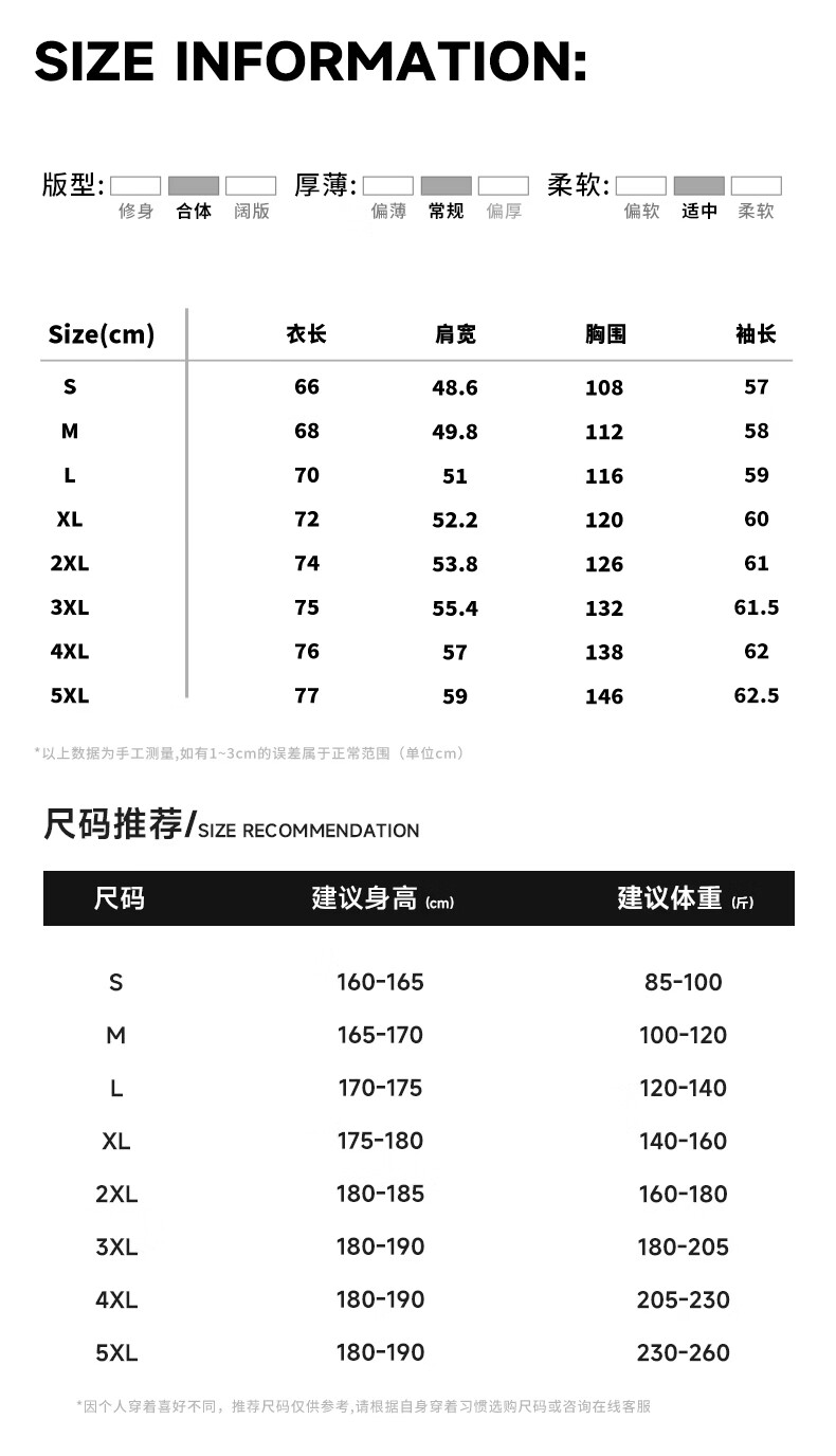 China (cm) 160-165/84-86 165-170 / 88-90 167-172 / 92-96 168-173 / 98-102 170-176 / 106-110
