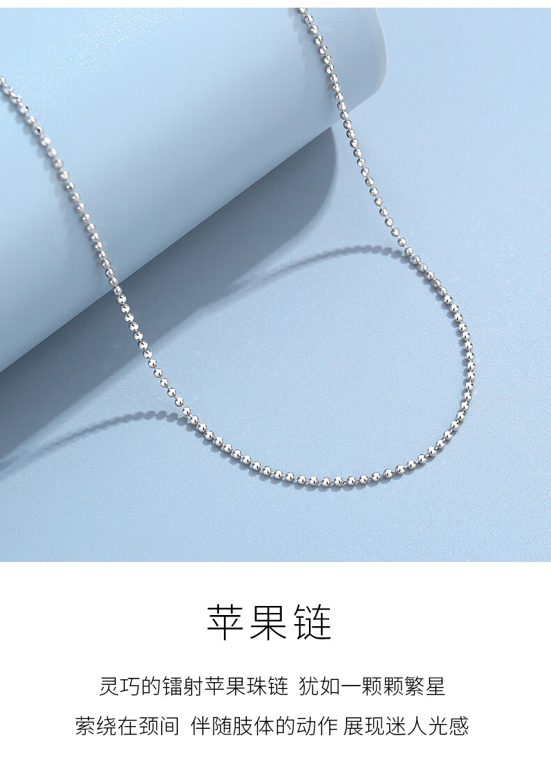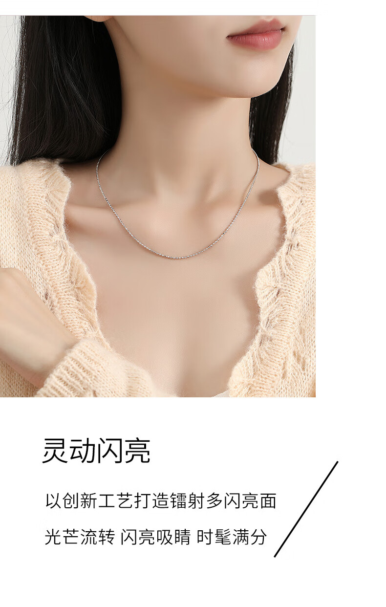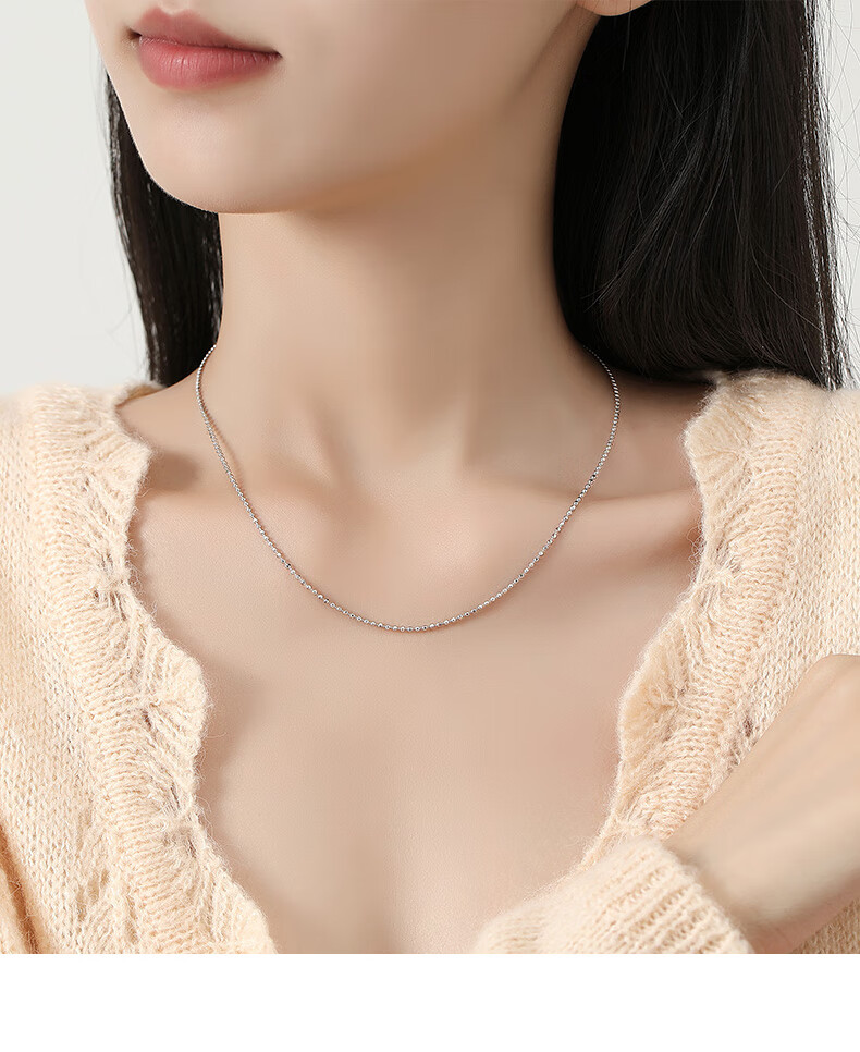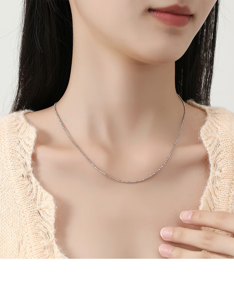 Miss JuJu pt950 platinum necklace for women, white gold ball bead chain, plain chain with pendant sweater chain, weight 3.5-3.7g, length 38+2cm, thickness about 1.1mm