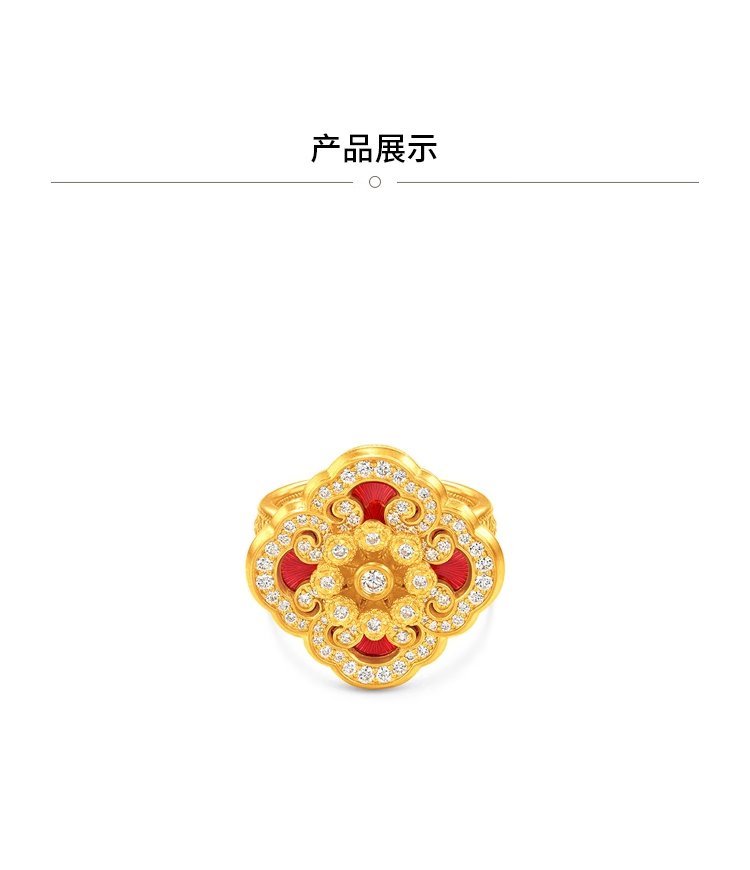 Chow Tai Fook Pre-order Forbidden City Series Wanhua Ruyi pure gold gold inlaid diamond ring RU2282 customized model, returns and exchanges are not supported, please contact customer service before bidding, delivery will take about 65 days