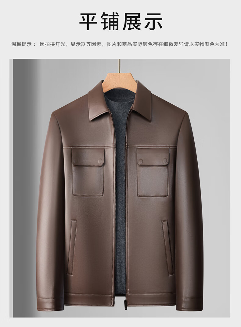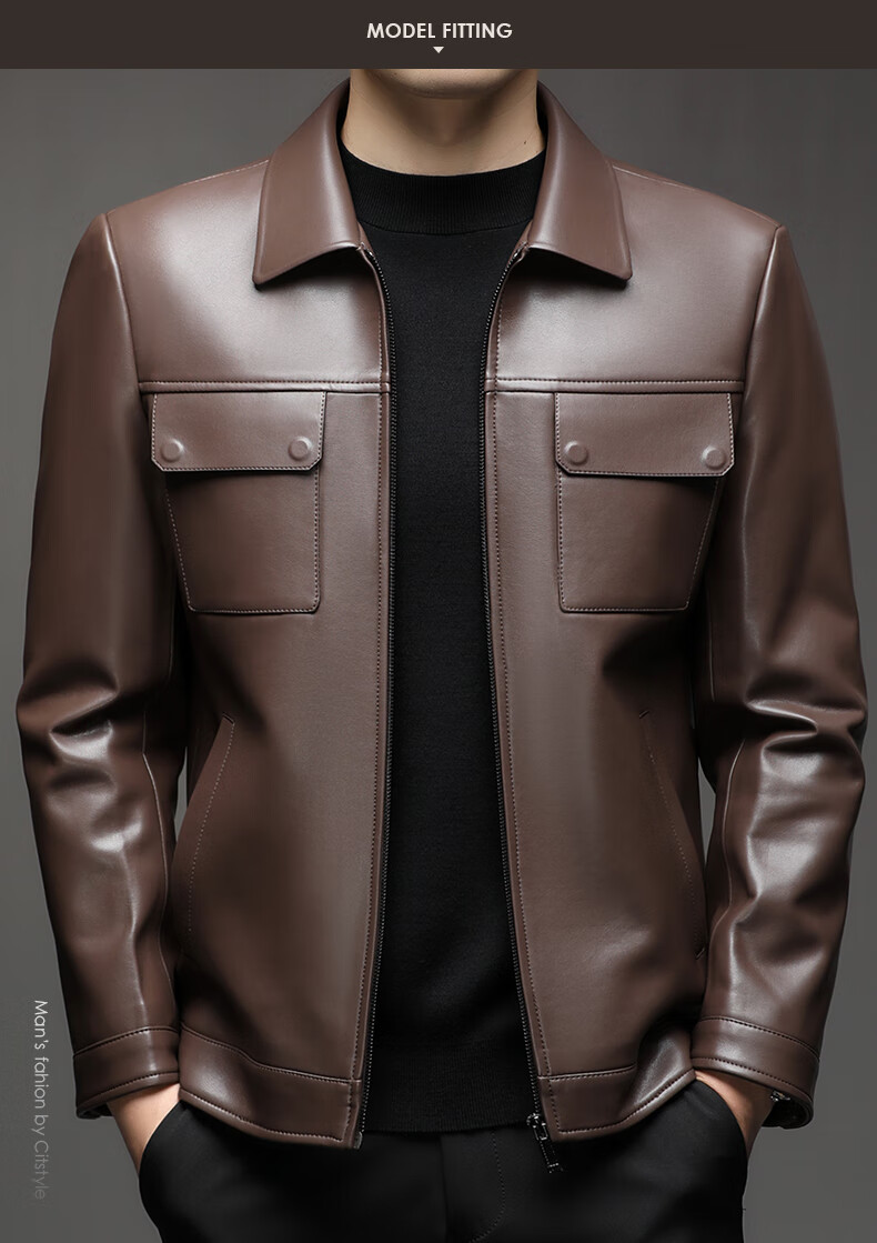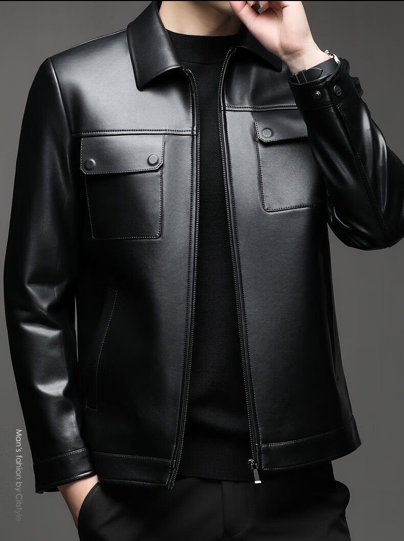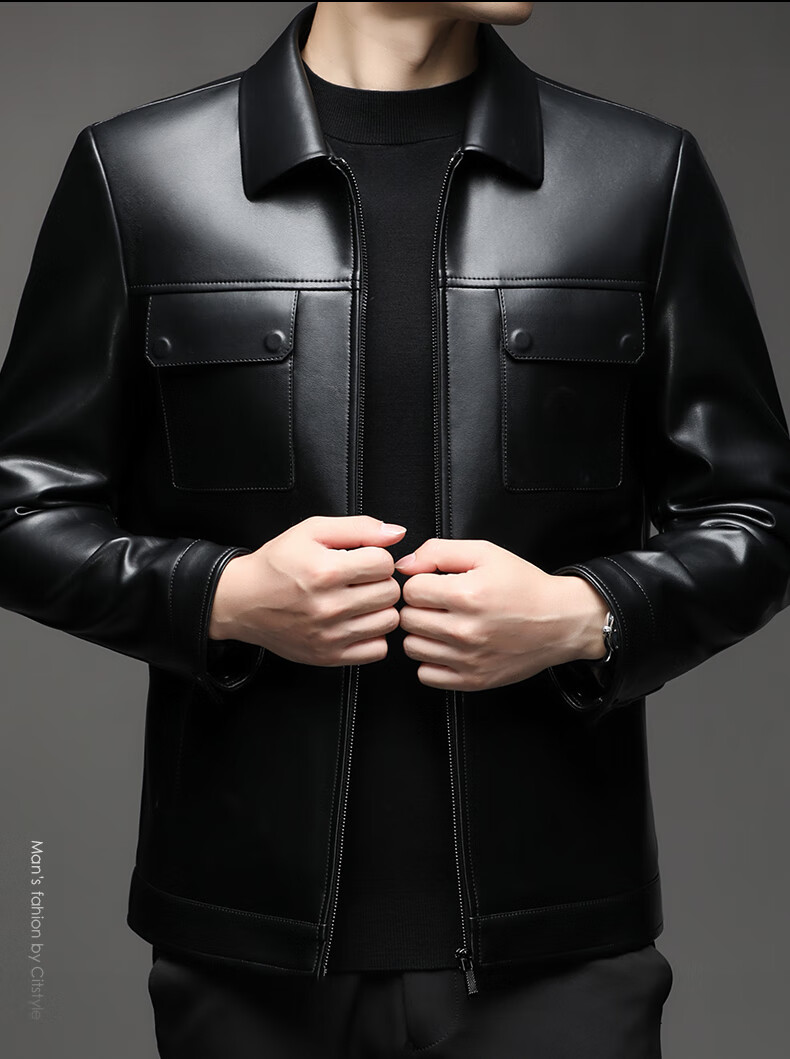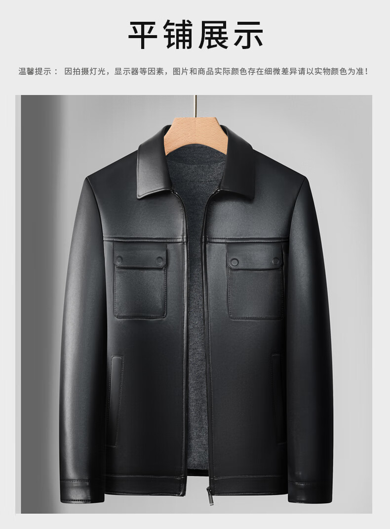 KBXNG Jinba Lapel Pocket Motorcycle Handsome Genuine Leather Jacket Men's Youth Popular Velvet Large Size Haining Military Work Suit Black Genuine Leather Counter Quality M 80-100Jin Jin is equal to 0.5 kg