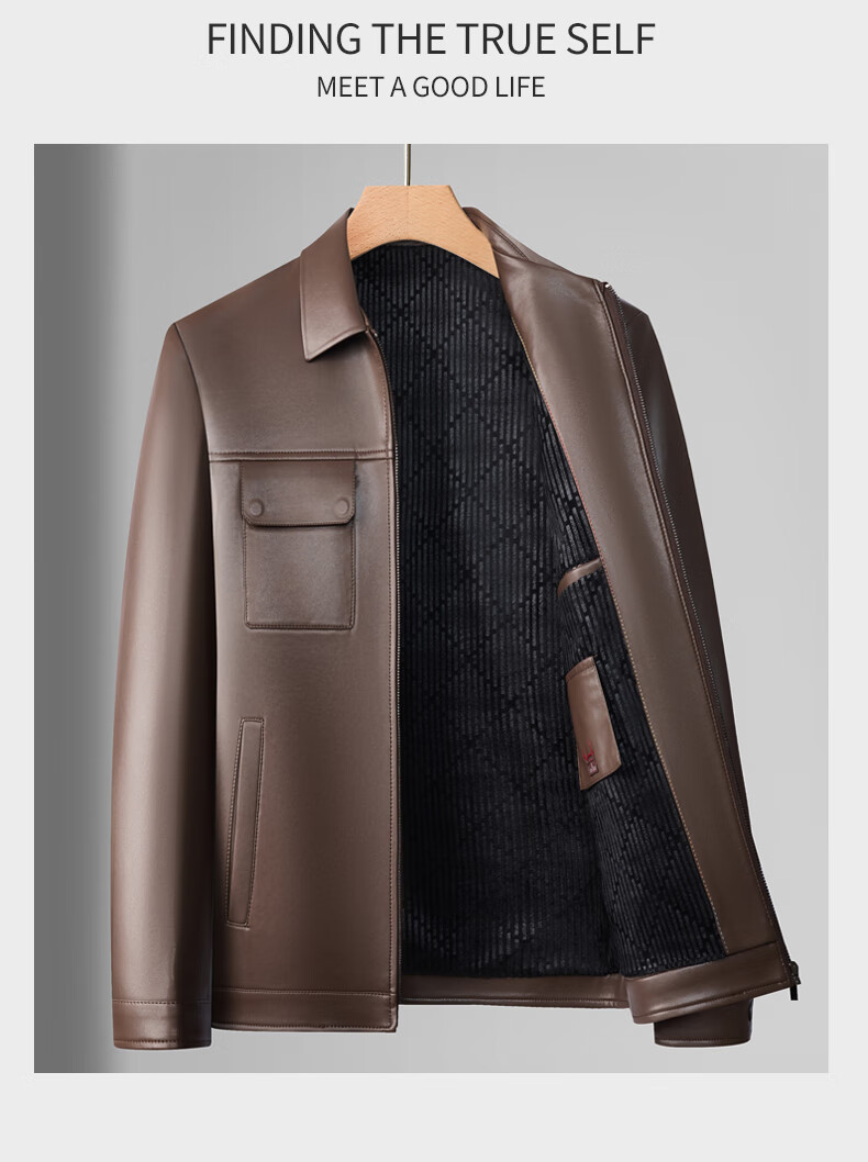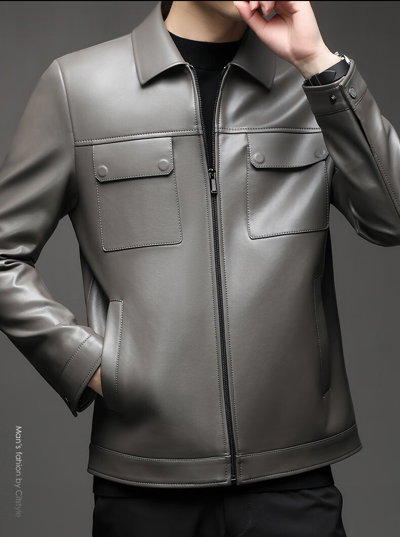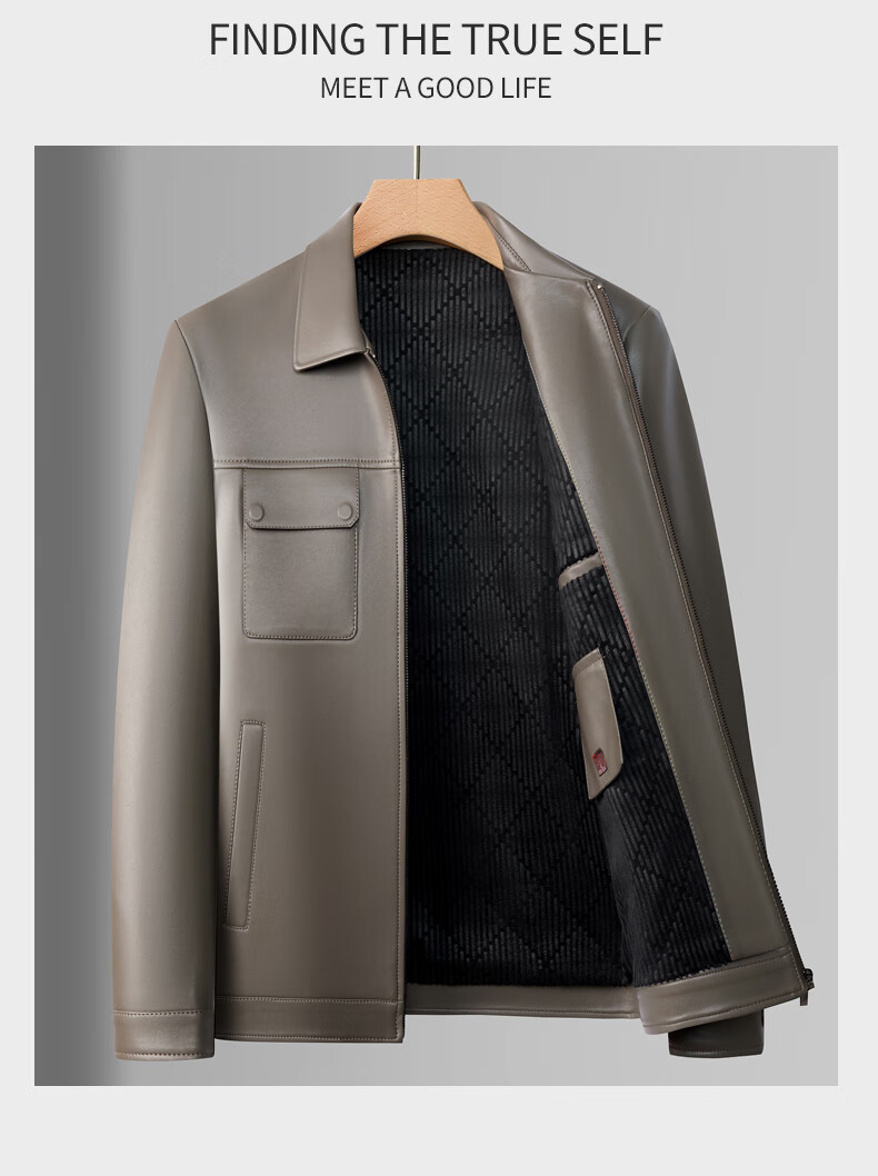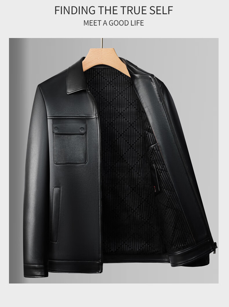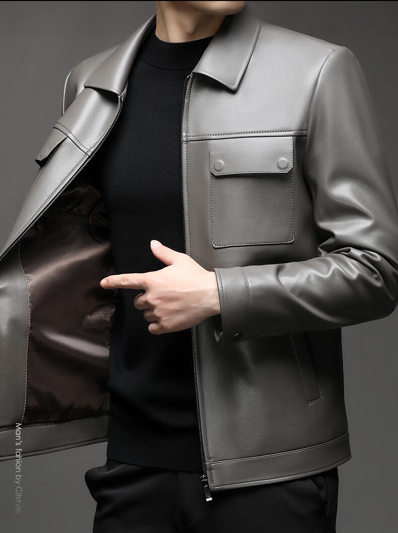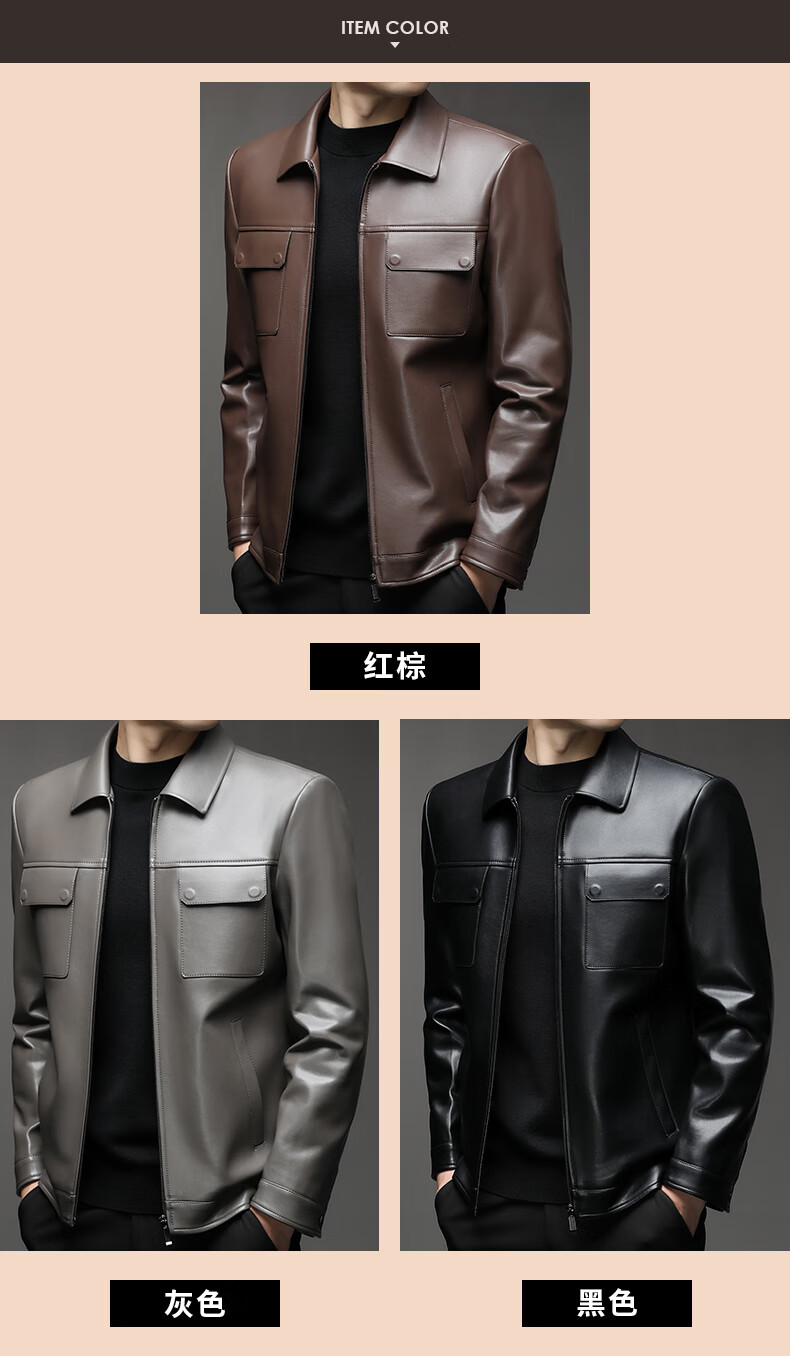 KBXNG Jinba Lapel Pocket Motorcycle Handsome Genuine Leather Jacket Men's Youth Popular Velvet Large Size Haining Military Work Suit Black Genuine Leather Counter Quality M 80-100Jin Jin is equal to 0.5 kg