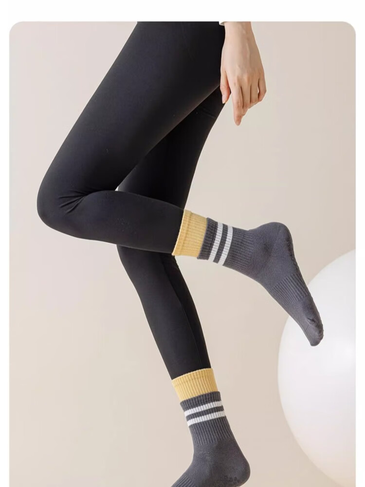 Catman Yoga Socks Non-slip Professional Women's Mid-Tube Indoor Fitness Pilates Training Wear Women's Sports Floor Mid-Tube Socks White + Milk White + Black One Size