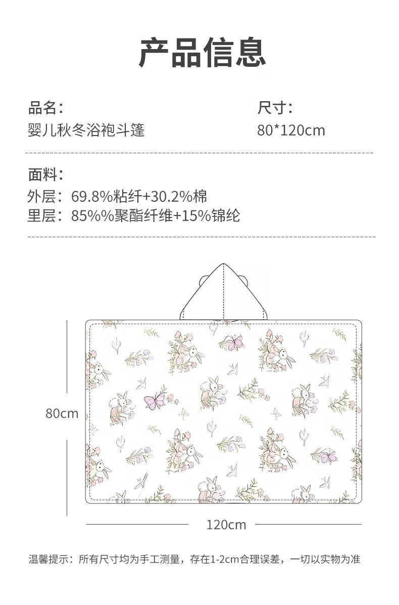 Princess Baby Cloak Autumn and Winter Baby Outing Cloak Children's Windproof Warm Cape Windproof Jacket Bath Towel Cover Hanamachi Tea Party (80*120cm)