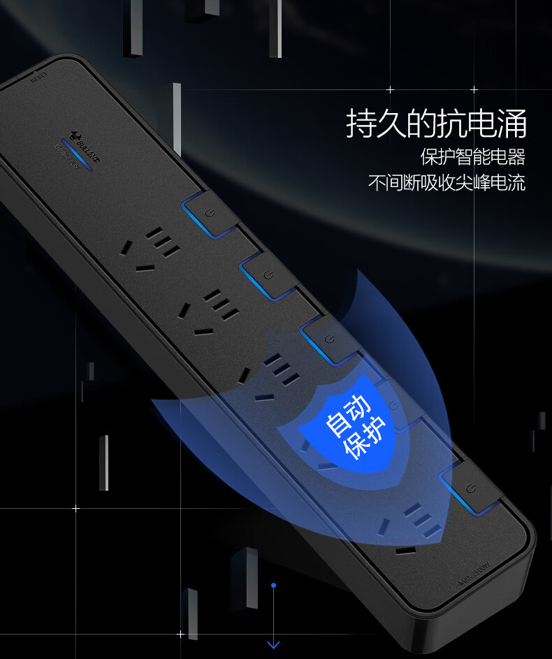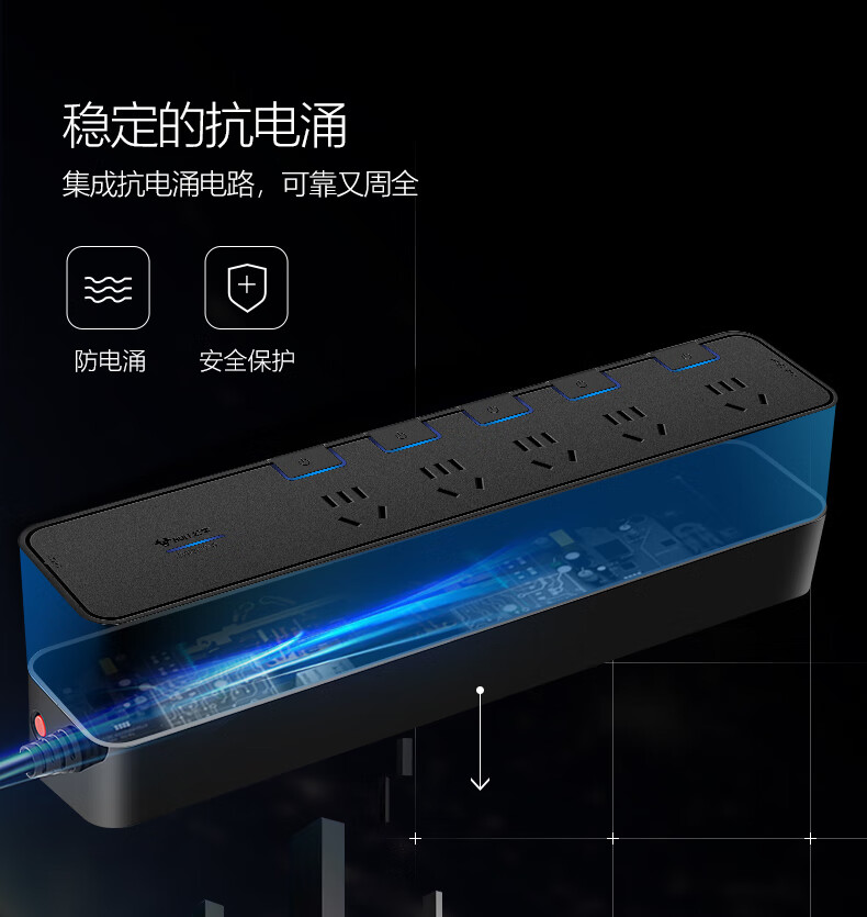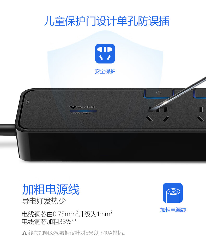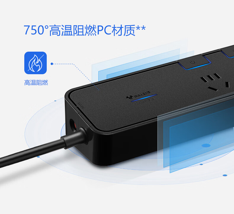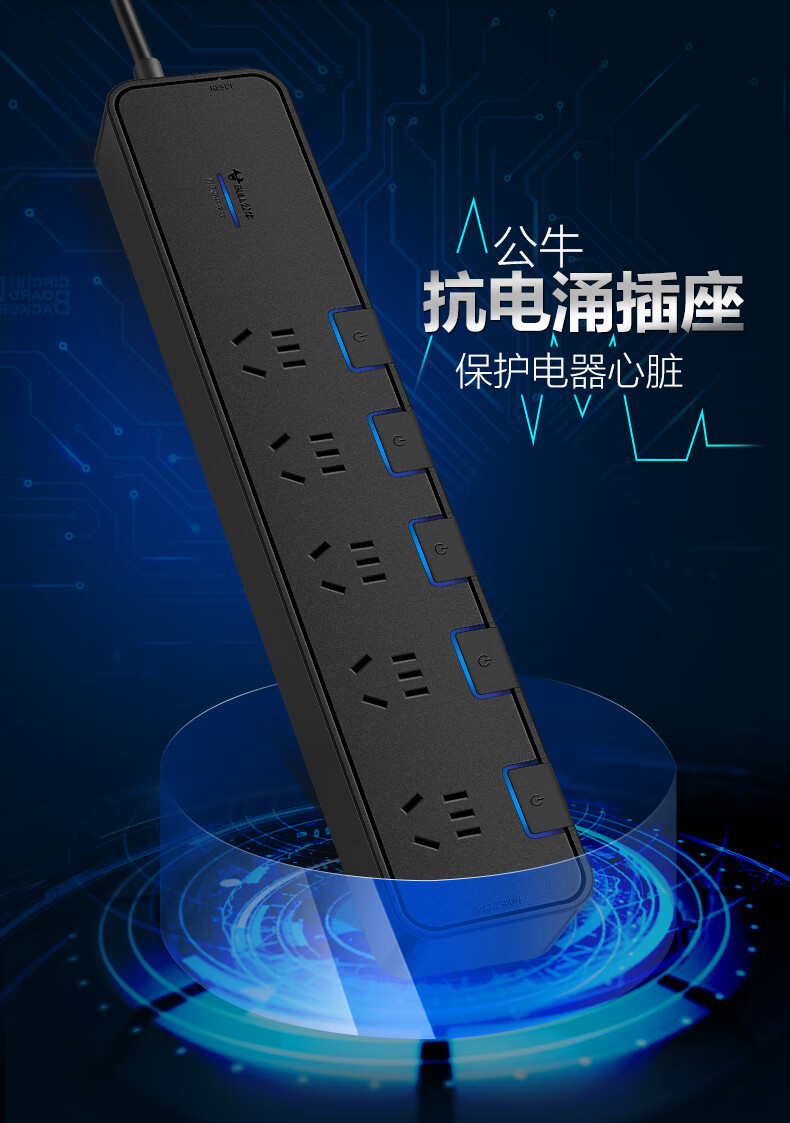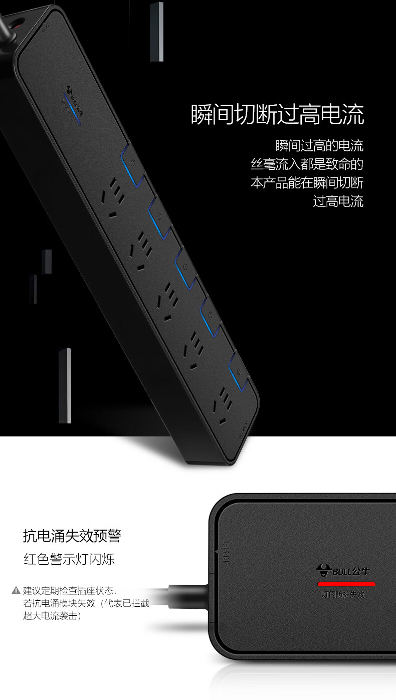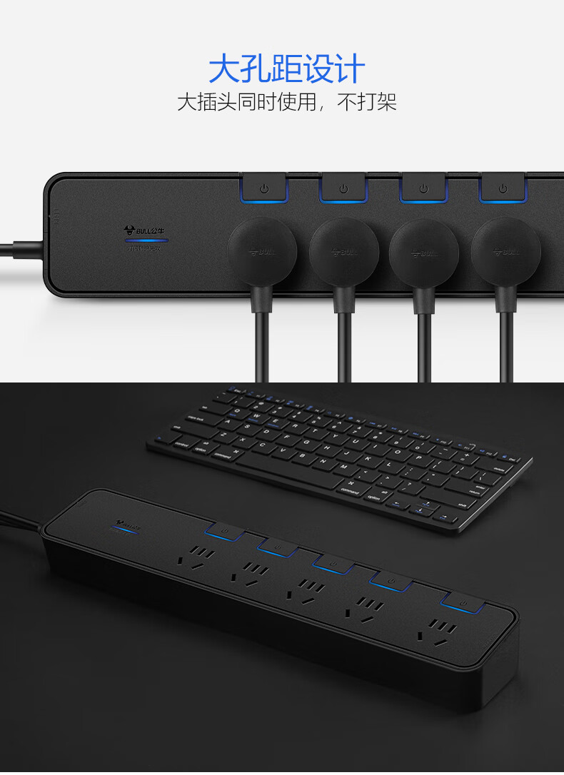 Bull wall-climbing wall-mounted lightning-proof anti-surge socket wall fixed power strip usb fast charging power strip holder anti-surge with switch drag strip anti-surge + overload protection + free holder 6 sockets master control switch 1.8 meters