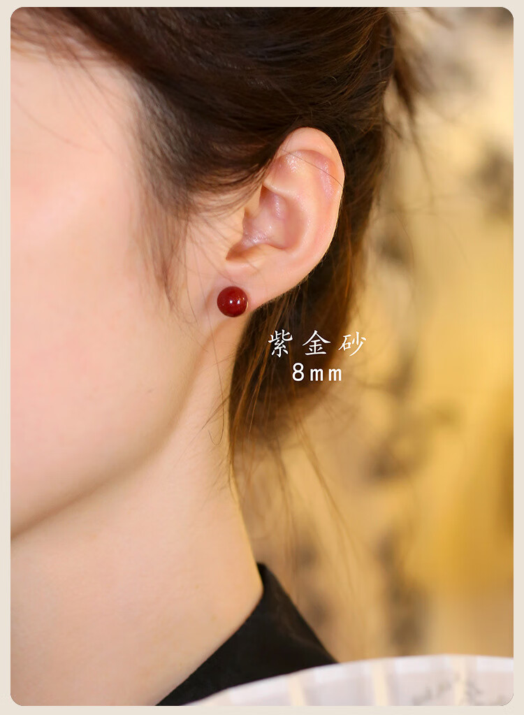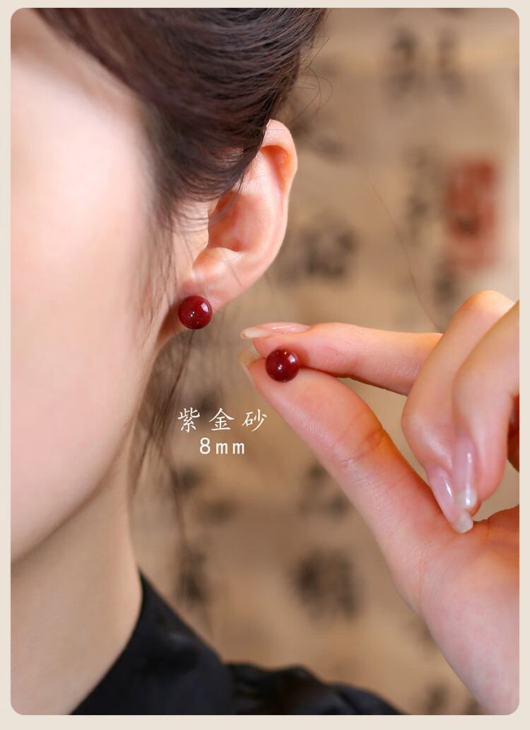 Meliades cinnabar earrings for women's birth year sterling silver 925 earrings birthday commemorative gift for girlfriend and best friend, no need to remove ears, purple gold sand 6mm