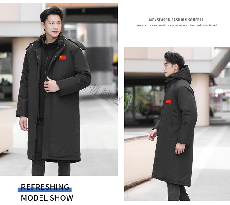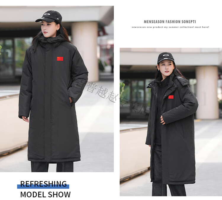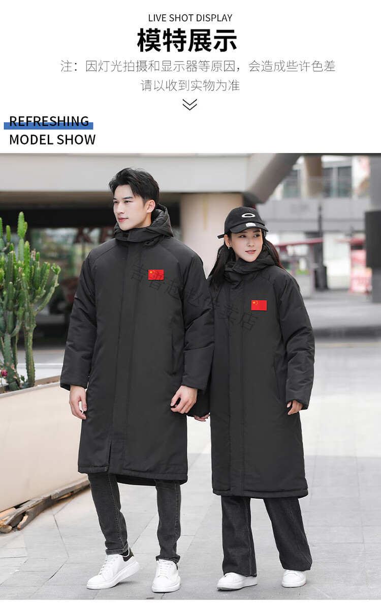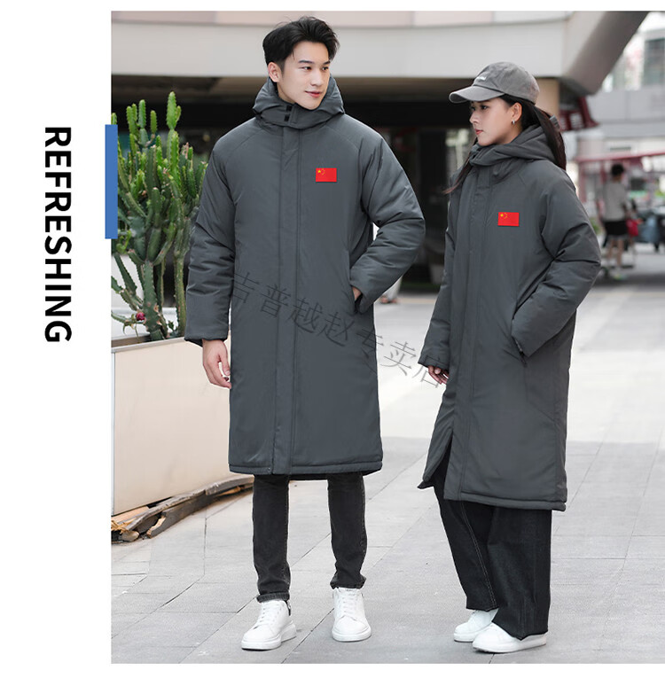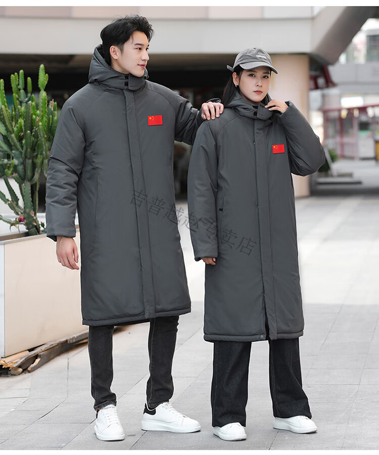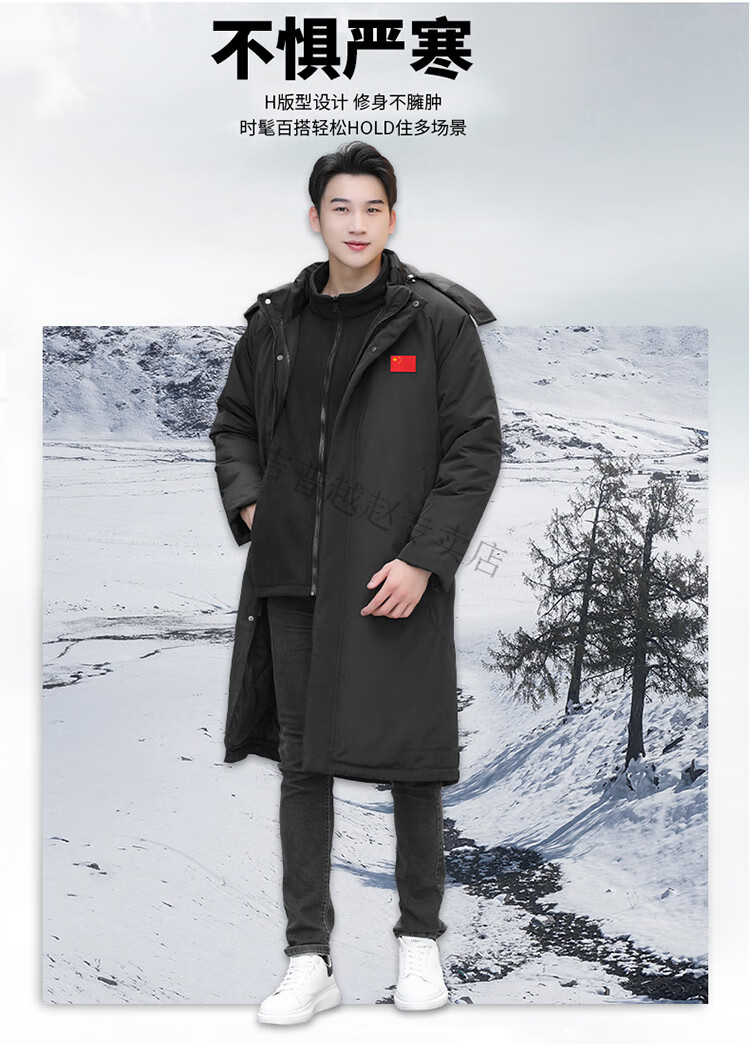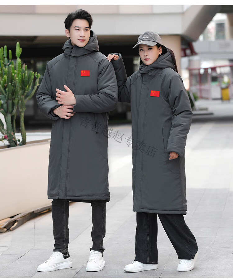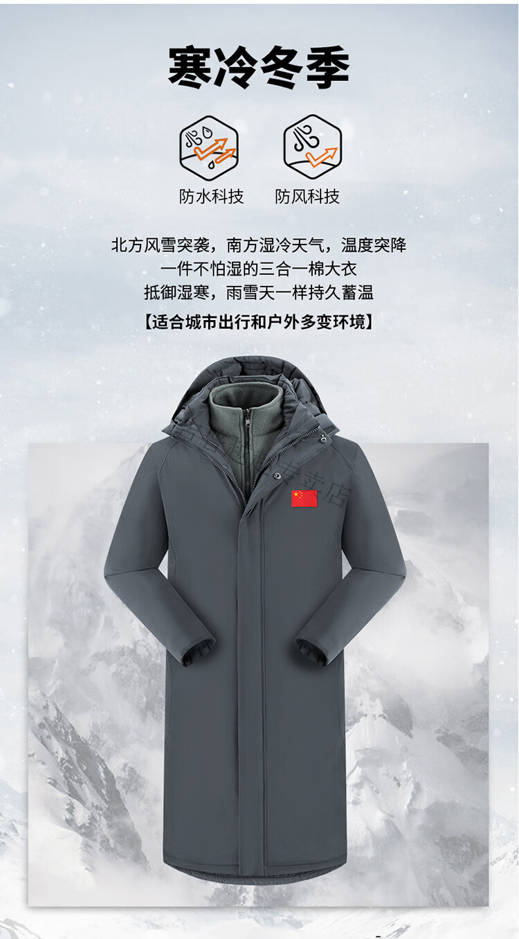 JEEP SPIRIT National Team Three-in-One Charge Cotton Coat Detachable Men's and Women's Thickened Over-the-Knee Long Winter Training Cotton Clothes for Sports Students S7 Flag CHINA Black Polar Fleece Liner S