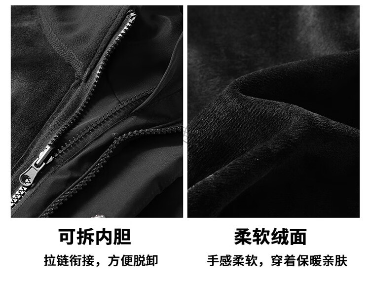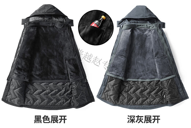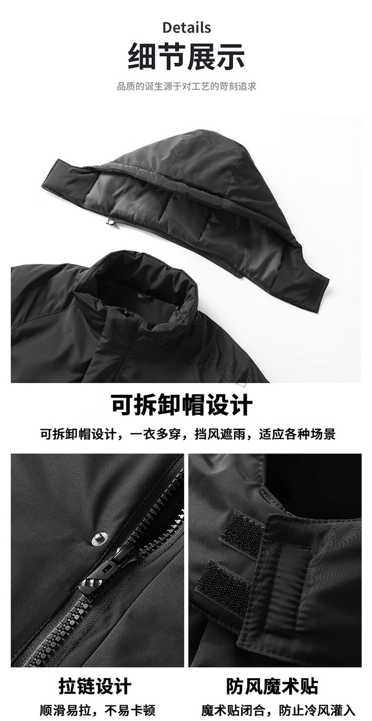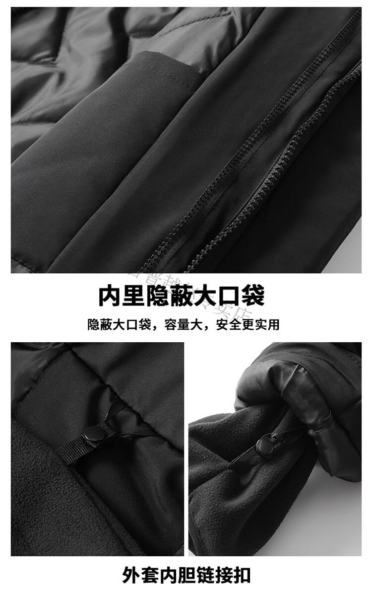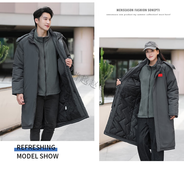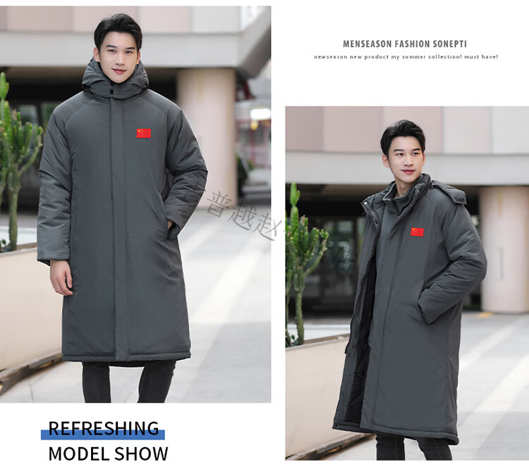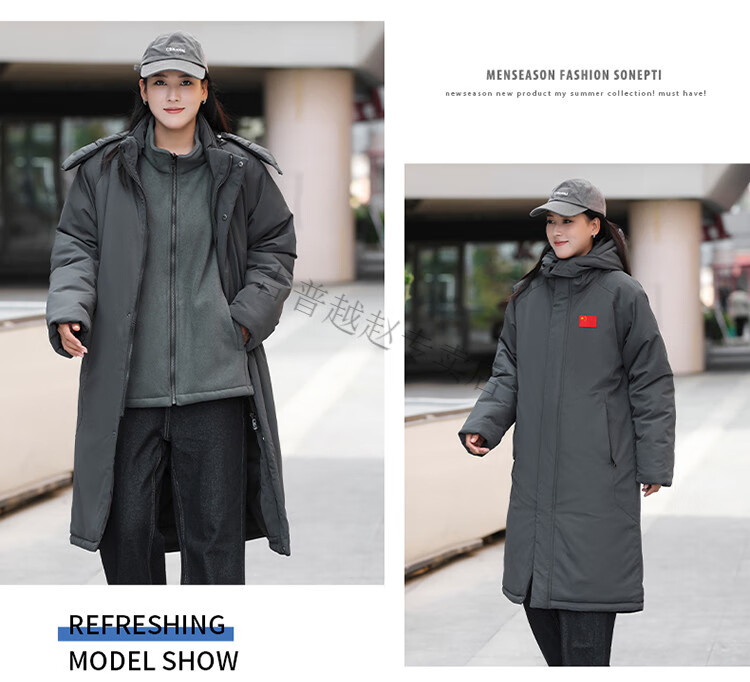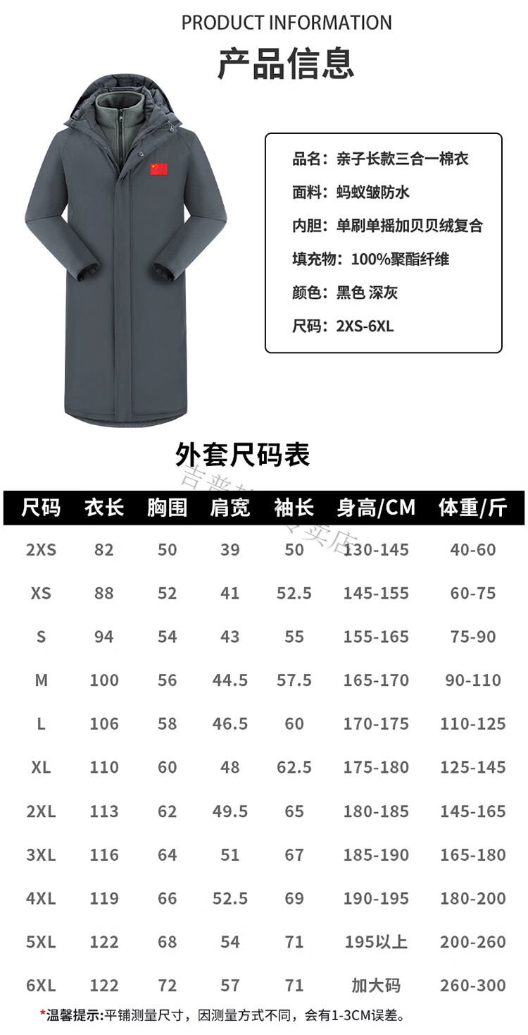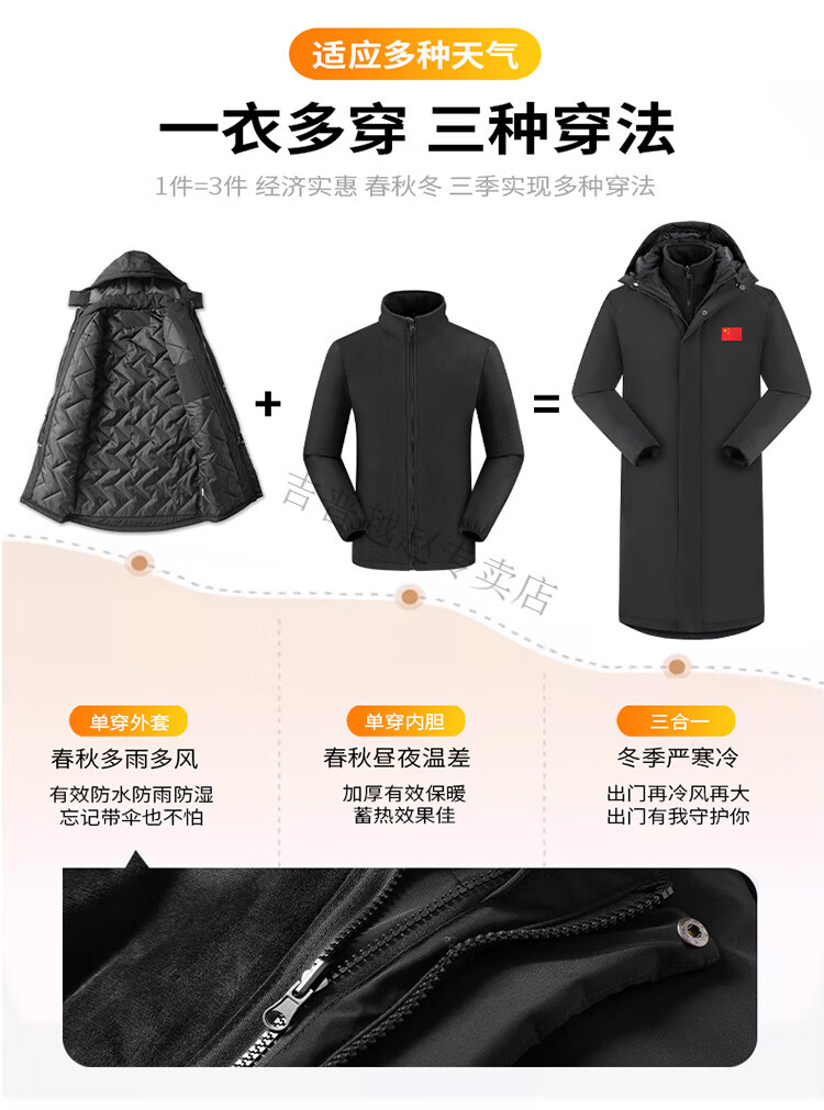 JEEP SPIRIT National Team Three-in-One Charge Cotton Coat Detachable Men's and Women's Thickened Over-the-Knee Long Winter Training Cotton Clothes for Sports Students S7 Flag CHINA Black Polar Fleece Liner S