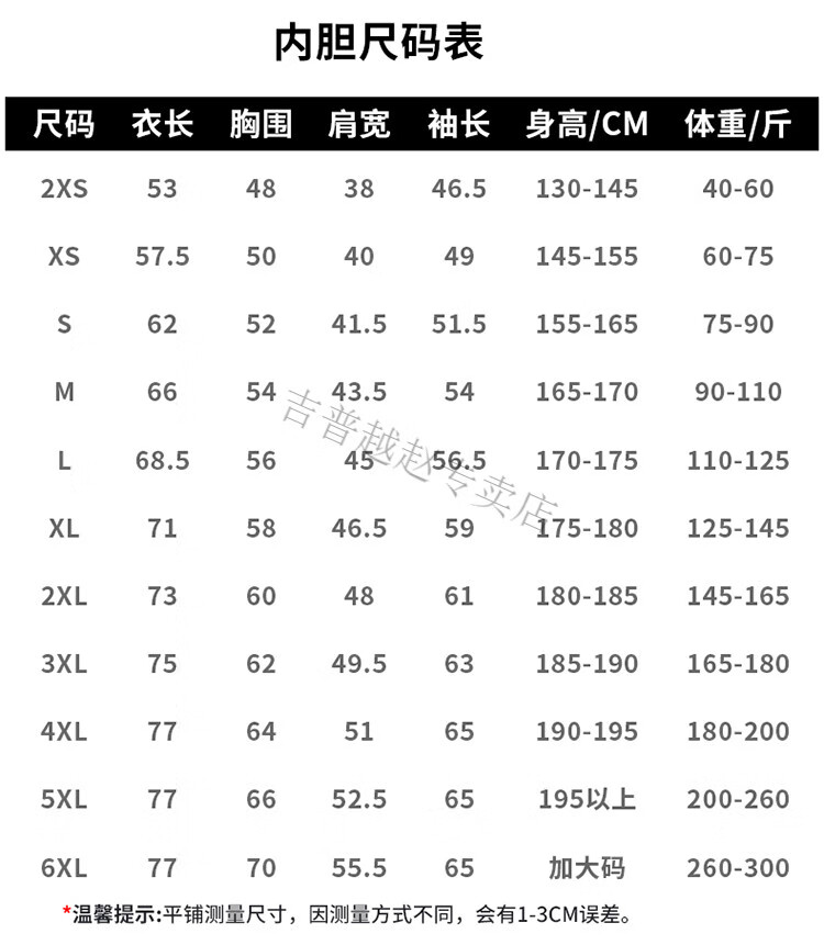 China (cm) 165 / 88-90 170 / 96-98 175 / 108-110 180 / 118-122 185 / 126-130