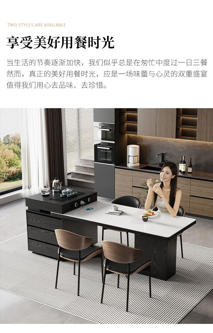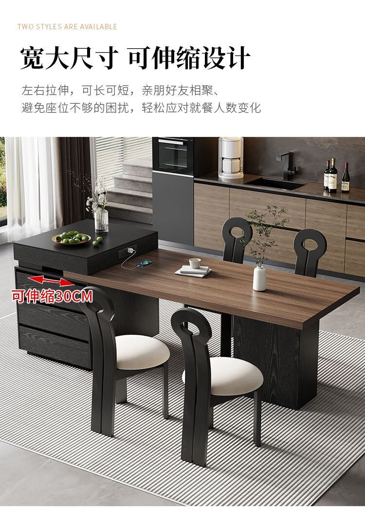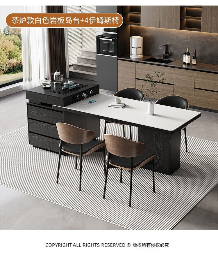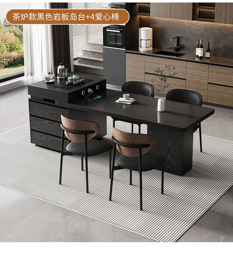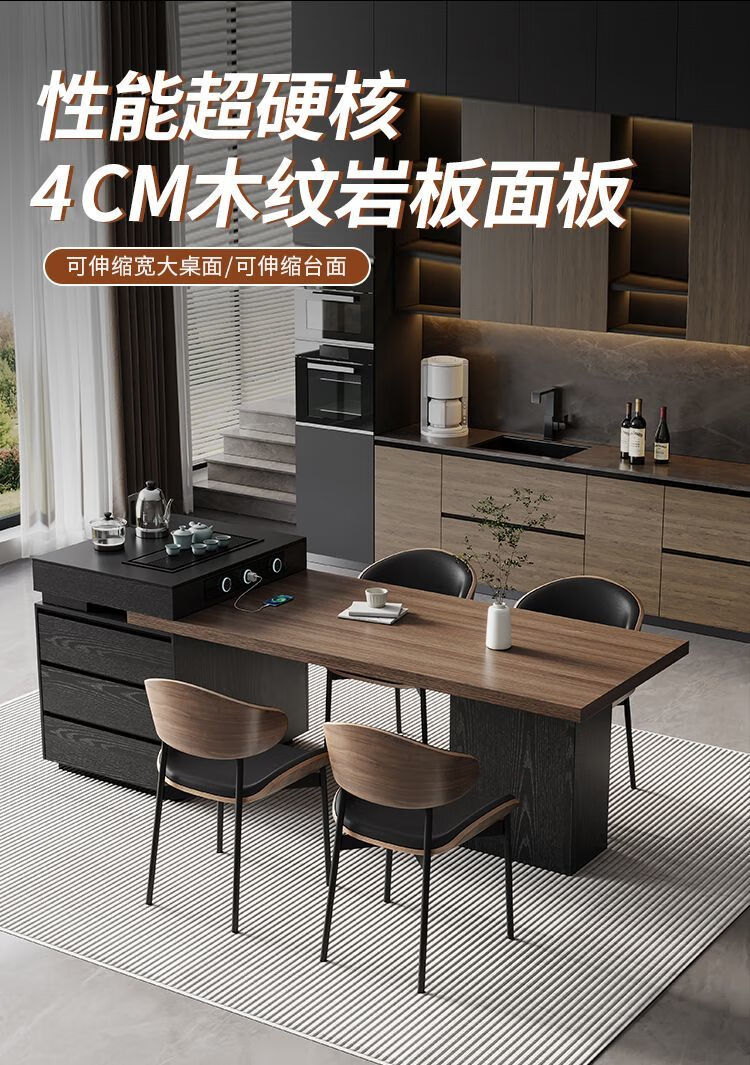 Suzhan island table light luxury minimalist coffee table multi-functional retractable all-in-one office home small apartment slate dining table island table 60cm (total length 1.65m-1.9m) island table dining table (ordinary socket)